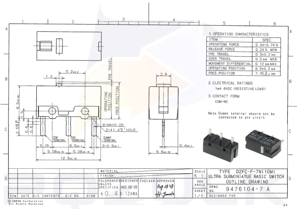 5PCS ใหม่แท้เมาส์ Micro Switch D2FC-F-7N ปุ่มเมาส์ Fretting D2FC-E-7N D2FC