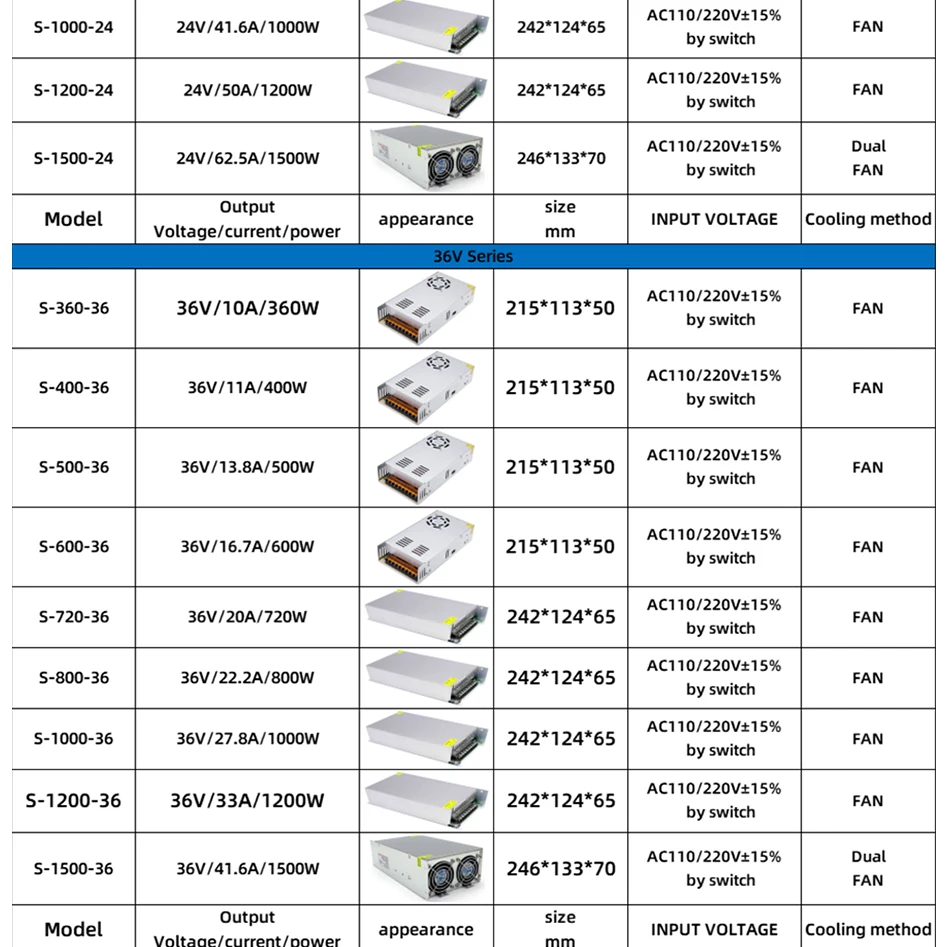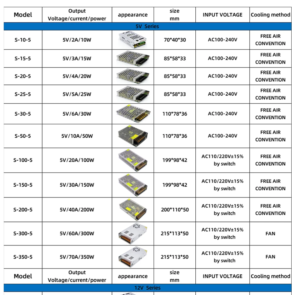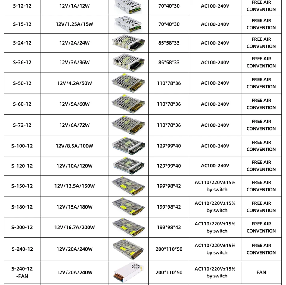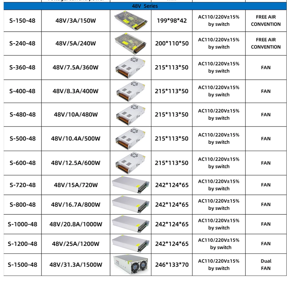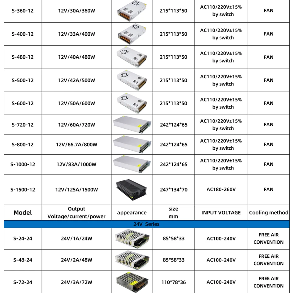 AC/DC Converter Enclosed Aluminum Case Switching Power Supply 5V 12V 24V 36V 48V Multi-specification