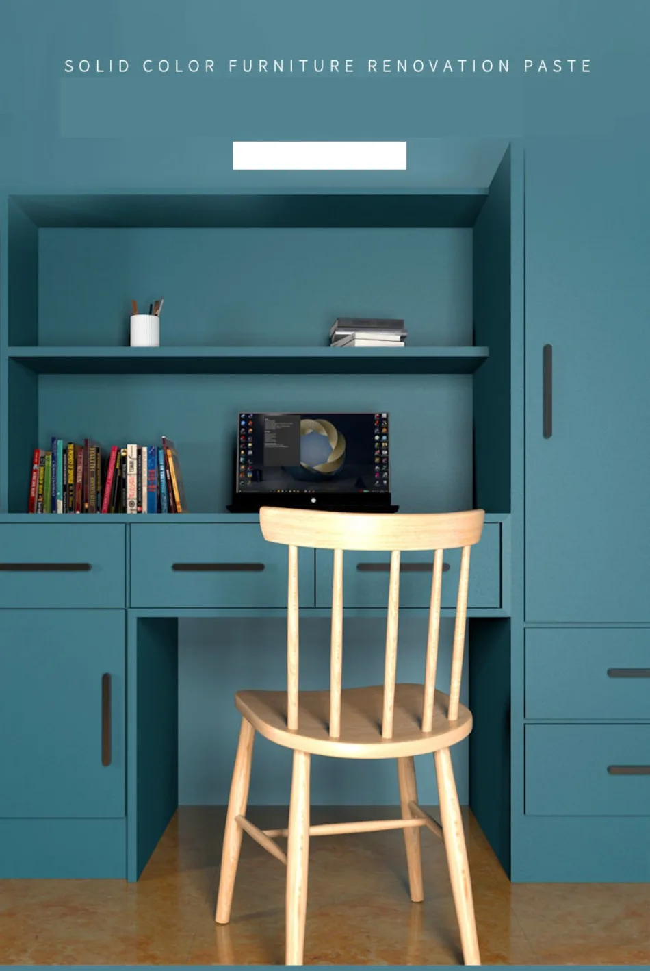 Matte ฟิล์มตู้ตกแต่งห้องครัวกันน้ําสีทึบ Self กาว Thicken วอลเปเปอร์ไวนิลห้องนอน Home Decor สติ๊กเกอร์ติดผนัง