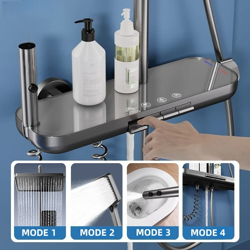 Smart Digital Display Bathroom Shower Set Piano Key Rainlfall Bath Showers System Set Apartment Bathtub Shower Faucet Full Set