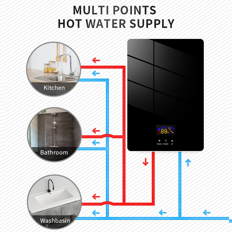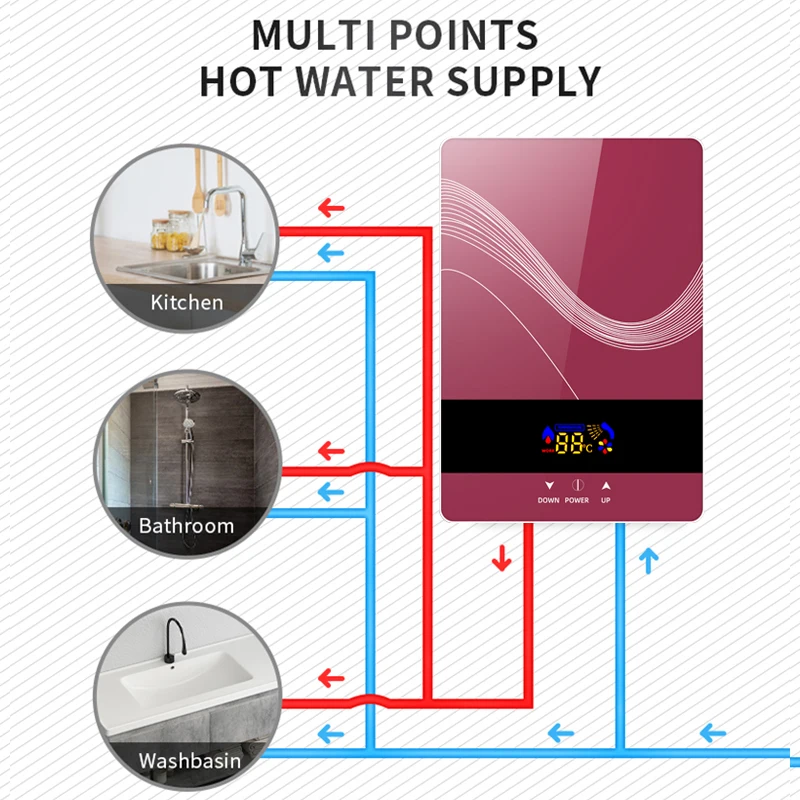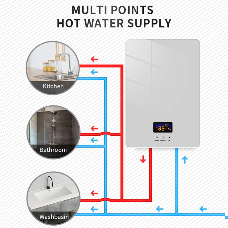 ห้องน้ําขนาดเล็กอัจฉริยะ 3500W เครื่องทําน้ําอุ่นครัวขนาดเล็กทันที Tankless ไฟฟ้าทันที
