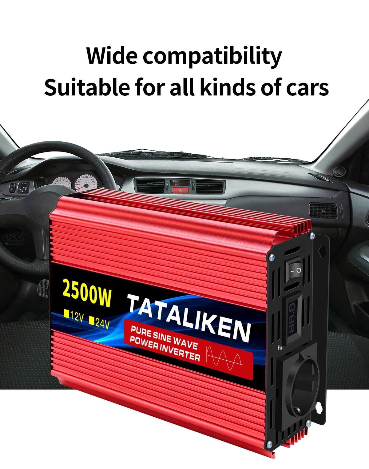 อินเวอร์เตอร์ PURE Sine WAVE 2500 W/3500 W/4500 W/5000 WDC 12 V/24 V ถึง AC 220V 230V แรงดันไฟฟ้า Transfer Converter อะแดปเตอร์ชาร์จ EU SOCKET