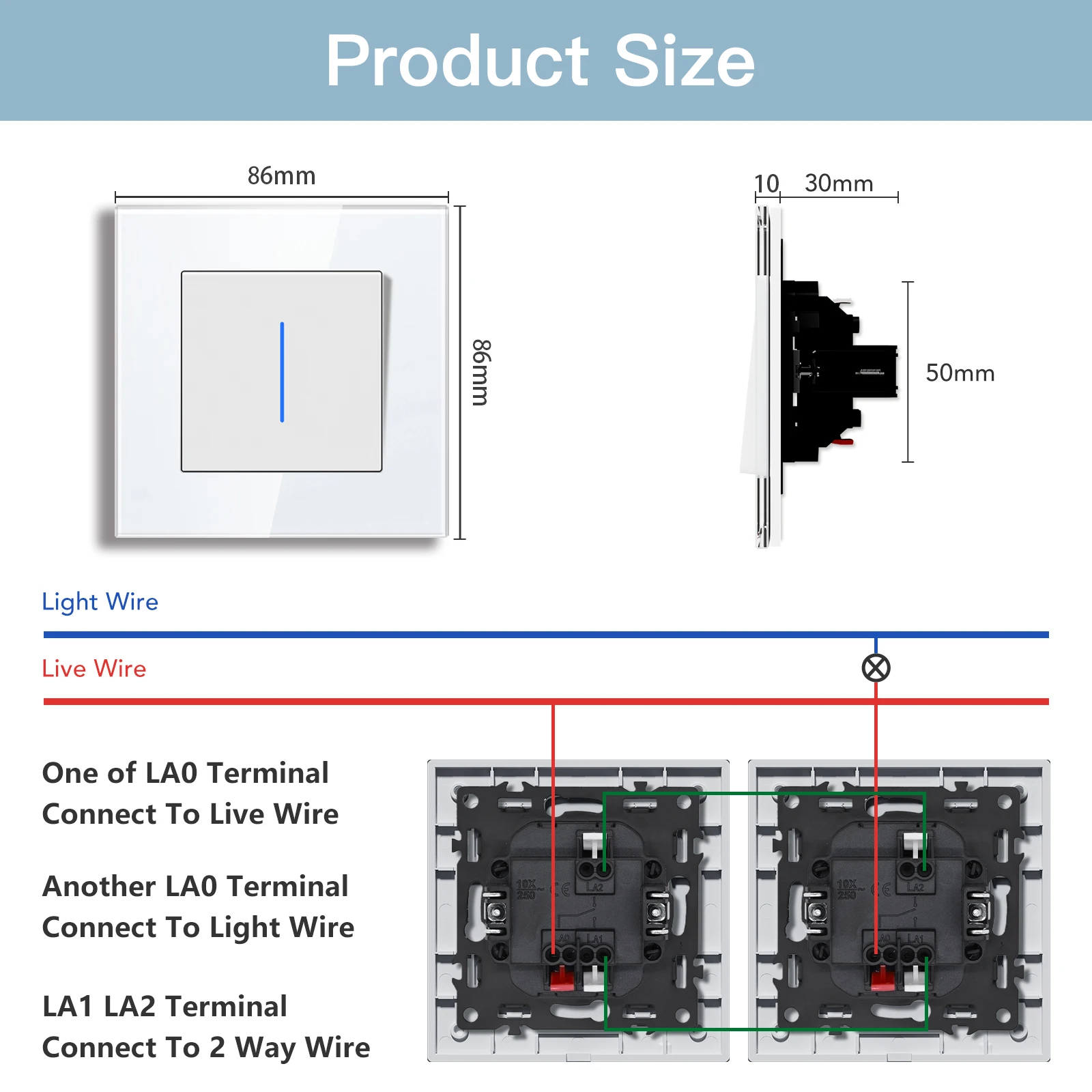BSEED E Series ปุ่มสวิทช์ 1/2 Gang 2Way Wall Light สวิทช์แผงกระจกสวิทช์ไฟ LED สําหรับบันได 250V