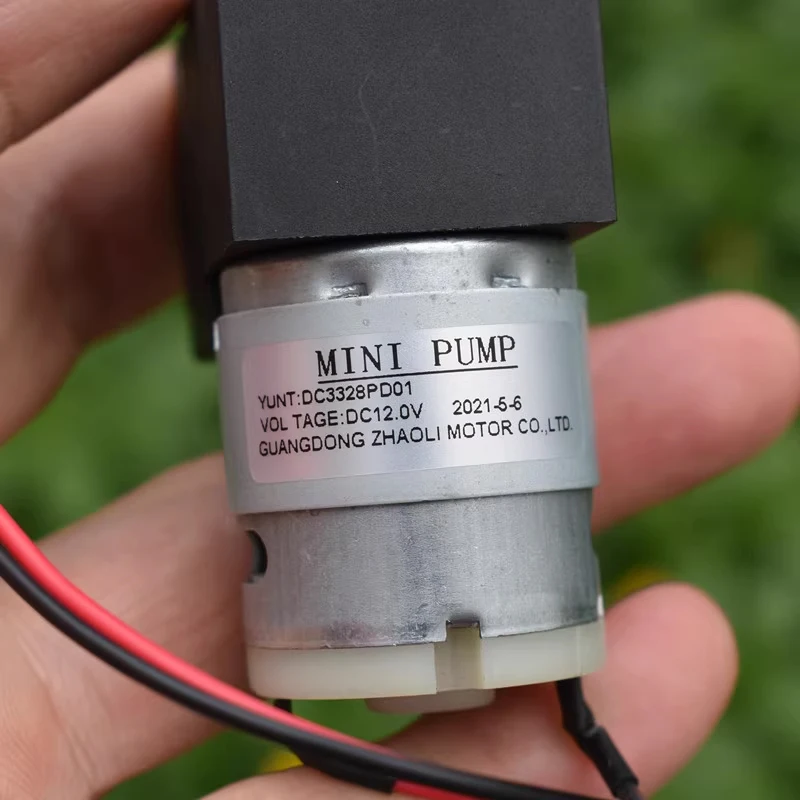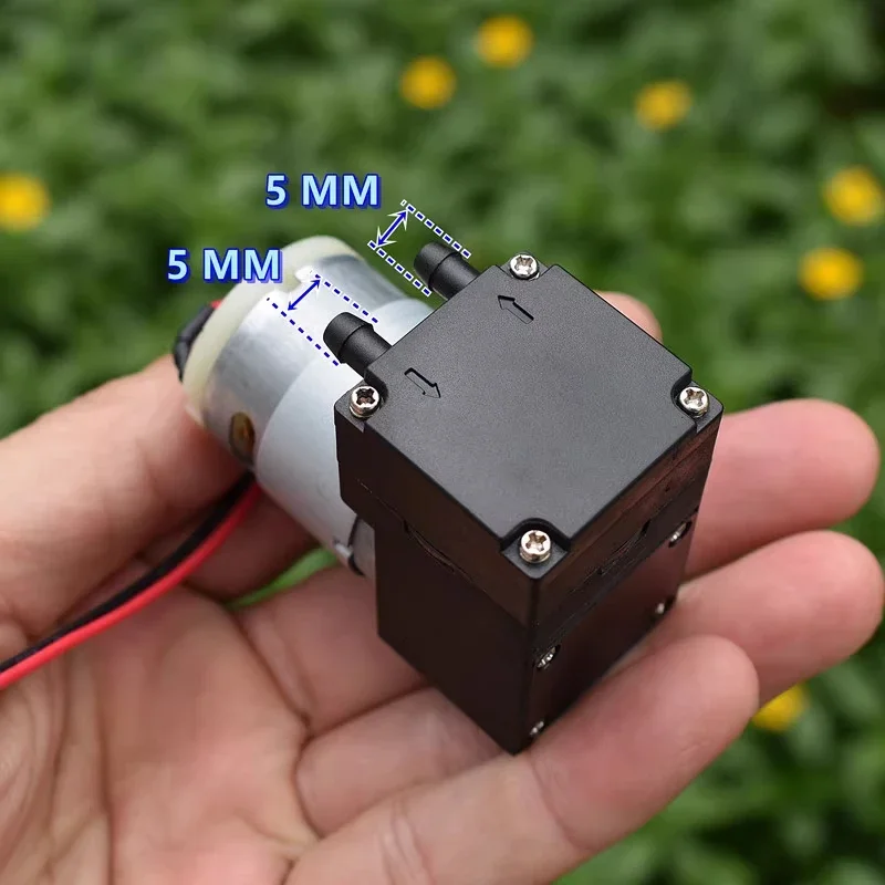 ปั๊มไดอะแฟรมขนาดเล็ก, ปั๊มแรงดันลบ, ปั๊มลม, ปั๊มของเหลว, สามารถดูดของเหลวได้เอง, ใช้งานได้ทั้งเป็นปั๊มสุญญากาศหรือปั๊มลม, แรงดันไฟฟ้าที่เหมาะสมคือ DC12V, และมอเตอร์เป็นมอเตอร์รุ่น 385
