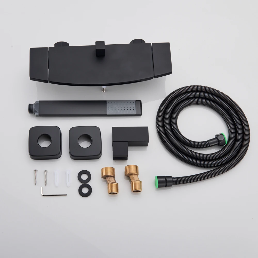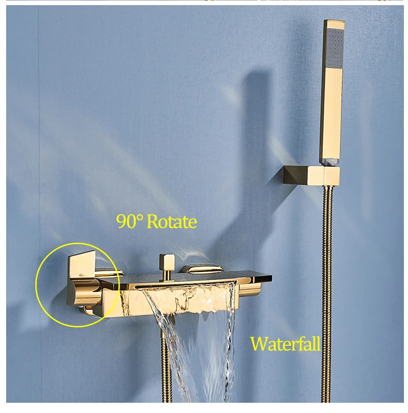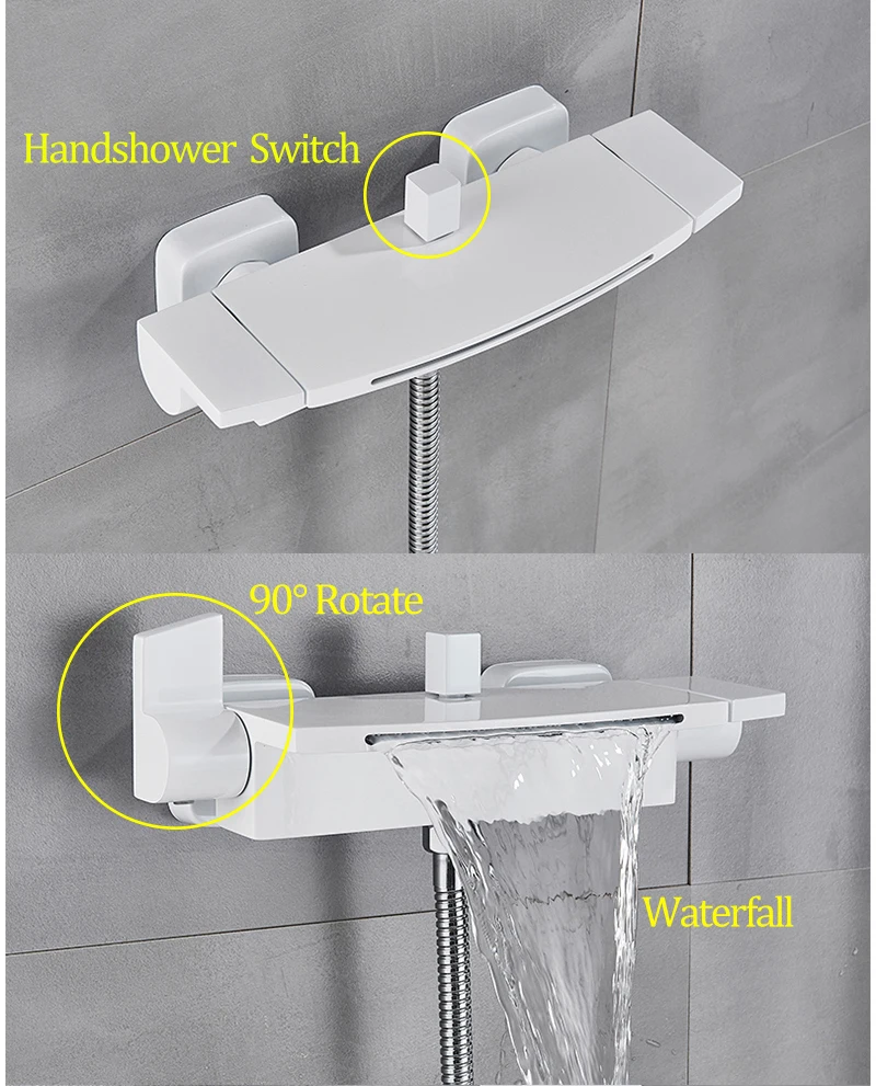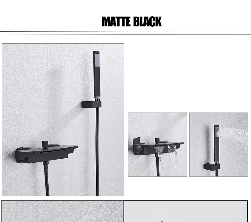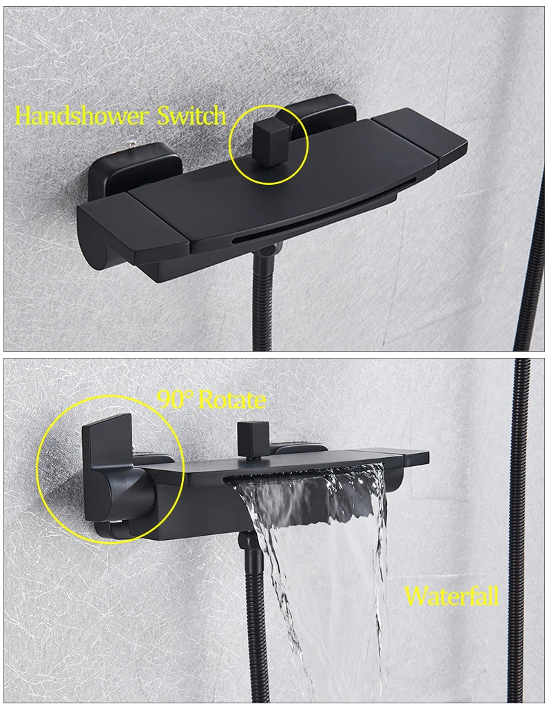 SHBSHAIMY Matte Black ก๊อกน้ําอ่างอาบน้ําติดผนังน้ําตก 90 การหมุนห้องน้ําชุดฝักบัวน้ําร้อนเย็น TAP Dual