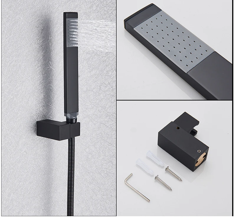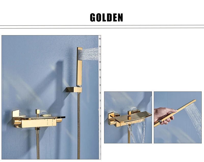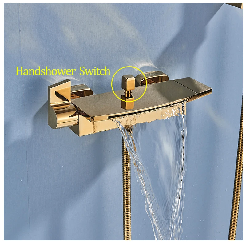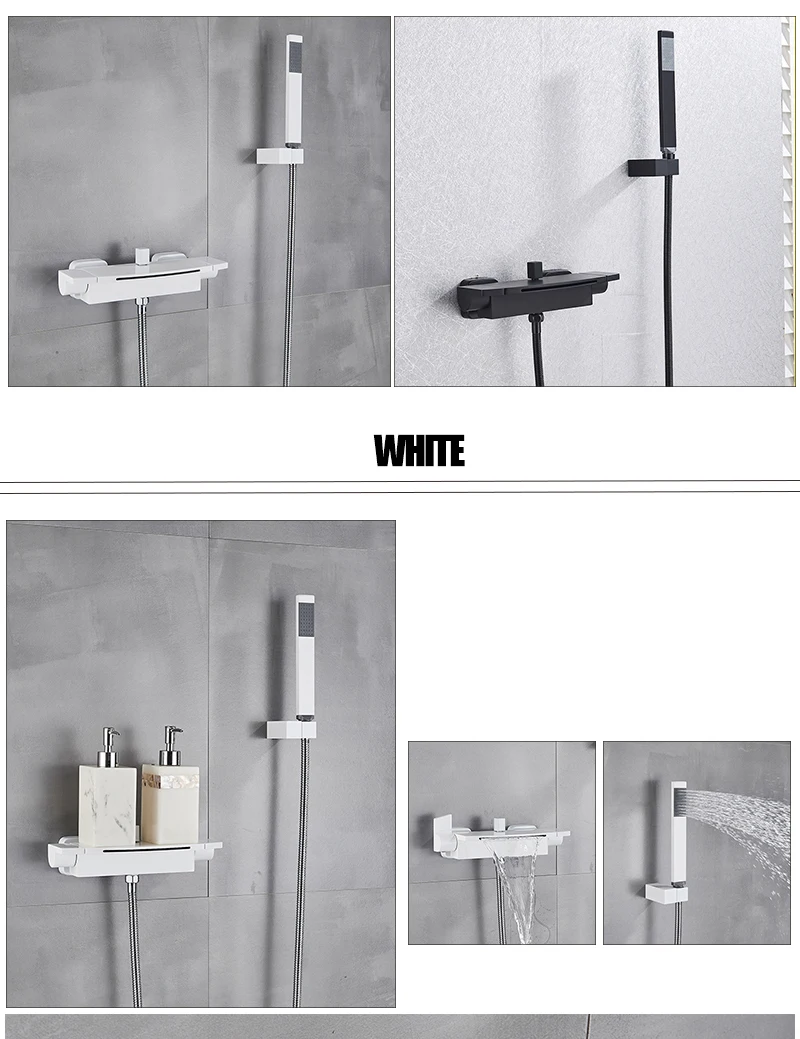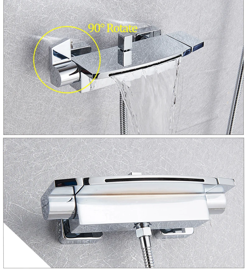 SHBSHAIMY Matte Black ก๊อกน้ําอ่างอาบน้ําติดผนังน้ําตก 90 การหมุนห้องน้ําชุดฝักบัวน้ําร้อนเย็น TAP Dual