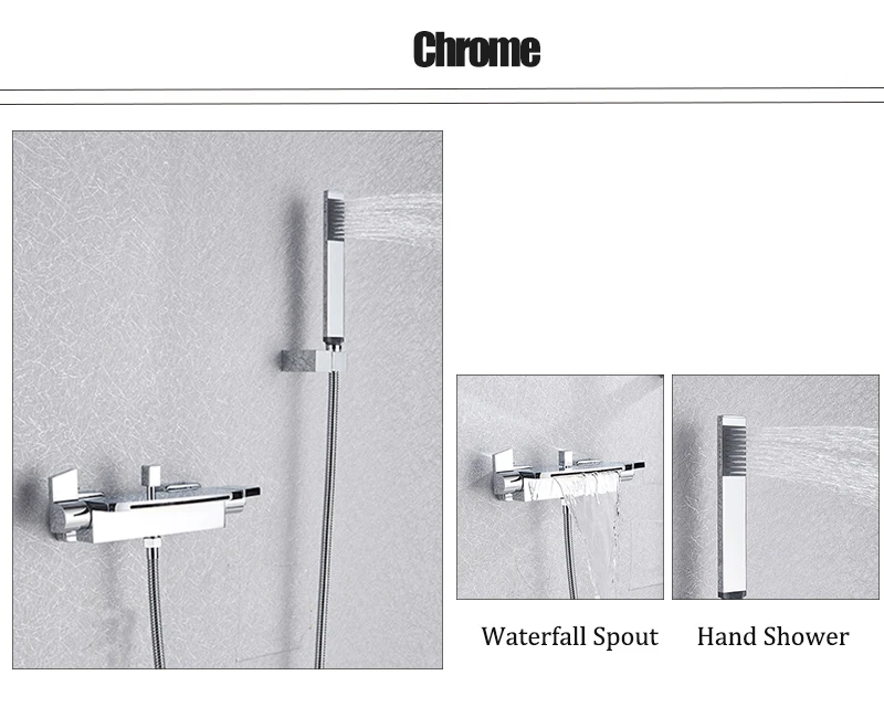 สีดําอ่างอาบน้ําก๊อกน้ํา Chrome ติดผนังน้ําตก 90 หมุนห้องน้ําชุดร้อนเย็นน้ํา TAP Dual Handle