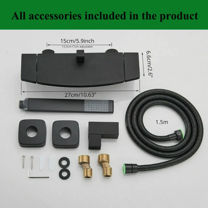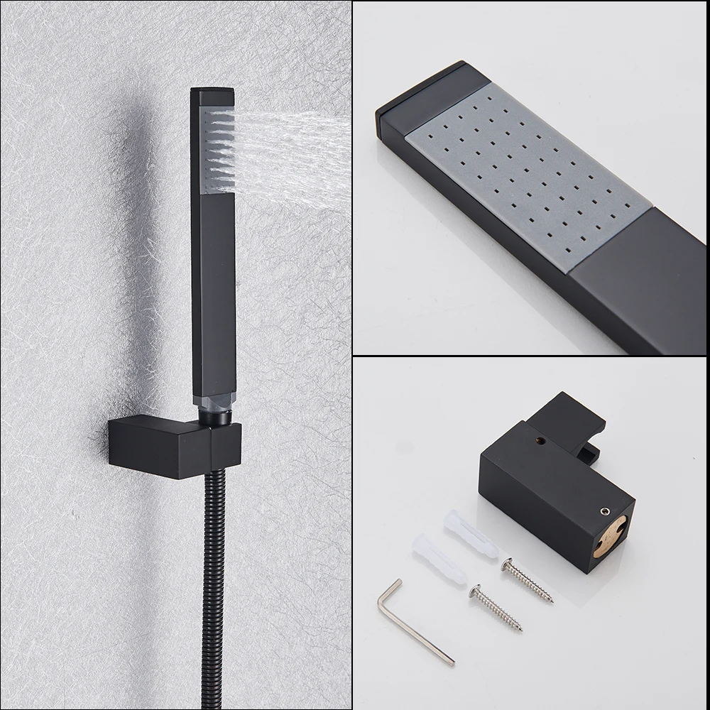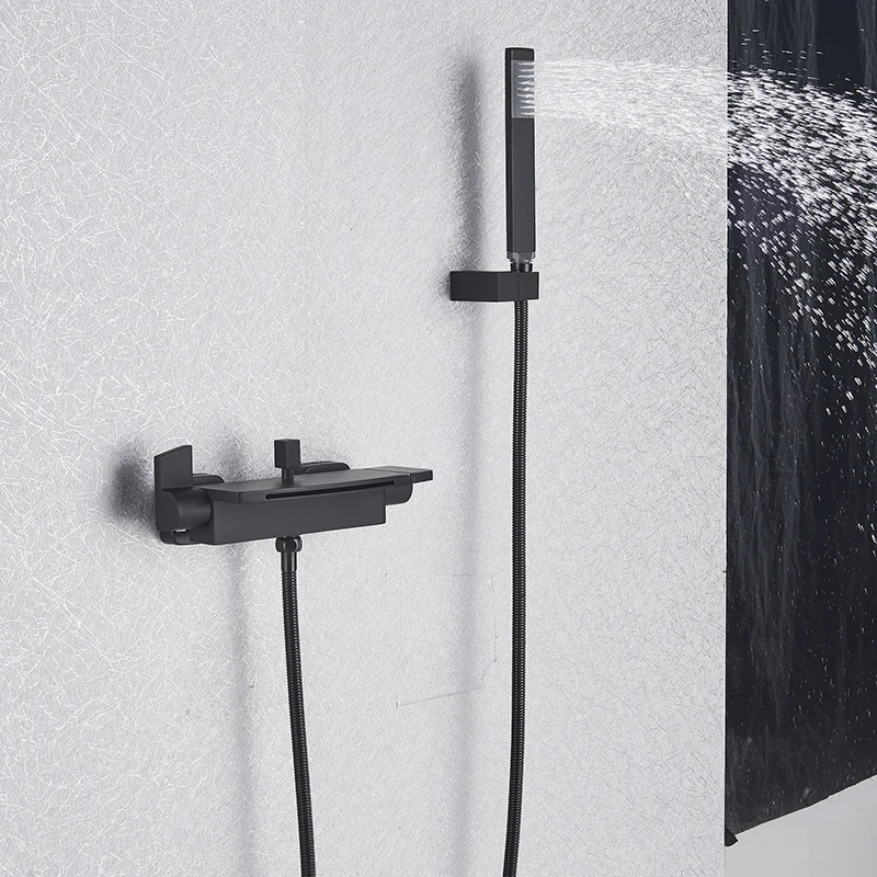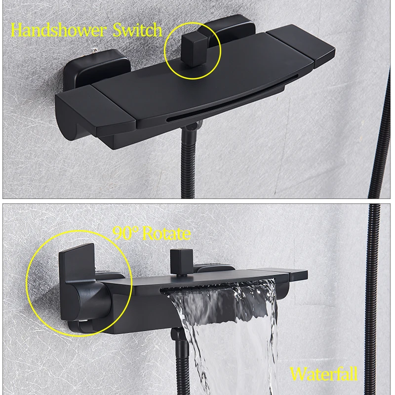 SHBSHAIMY Matte Black ก๊อกน้ําอ่างอาบน้ําติดผนังน้ําตก 90 การหมุนห้องน้ําชุดฝักบัวน้ําร้อนเย็น TAP Dual