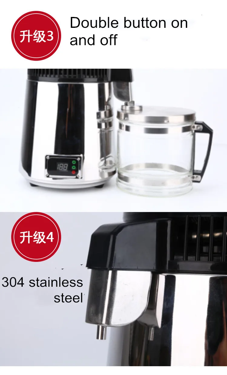 เครื่องกลั่นน้ําในบ้านสแตนเลส 4 ลิตร – เครื่องทําน้ํากลั่นทันตกรรมอัตโนมัติสําหรับใช้ในครัวเรือน, ห้องปฏิบัติการ, คลินิก – ปลอดสาร BPA, 304 St