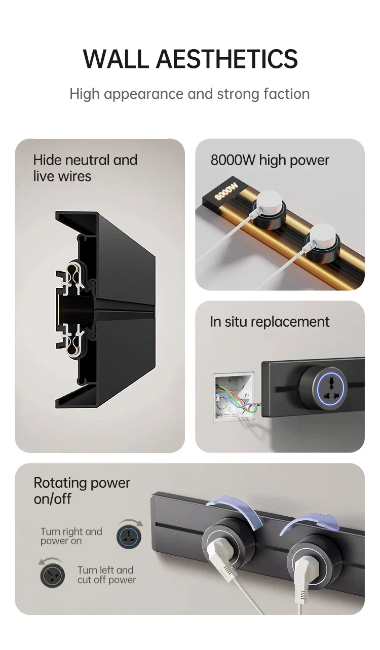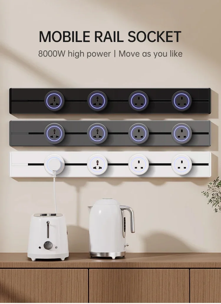 30/40/50 ซม.Track SOCKET Wall Power Rail Movable ปลั๊กอะแดปเตอร์ซ็อกเก็ต High End Home Appliance Power 8000W EU US UK มาตรฐาน USB