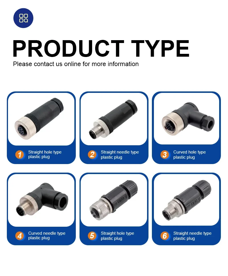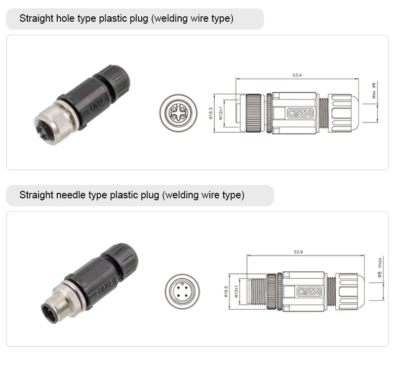 CAZN M12 พลาสติกประกอบปลั๊กตรงมุมขั้วต่อสกรู 3/4/5/8 Core D-Type 12PIN เชื่อม