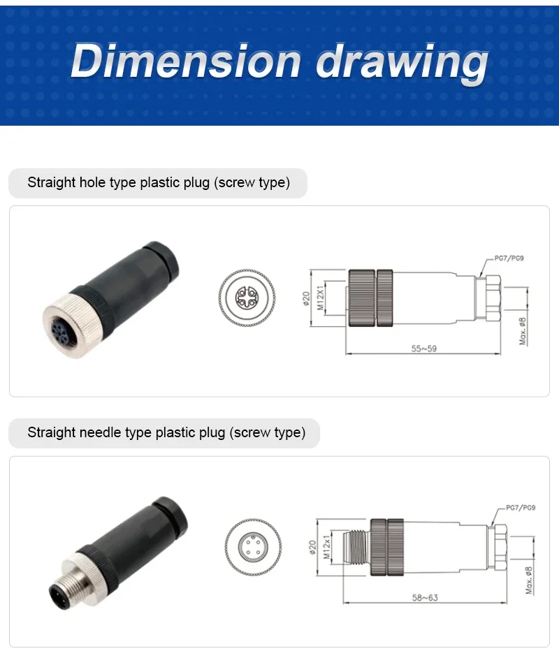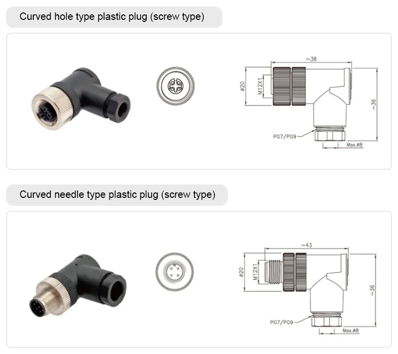 CAZN M12 พลาสติกประกอบปลั๊กตรงมุมขั้วต่อสกรู 3/4/5/8 Core D-Type 12PIN เชื่อม จาก 1 รีวิว