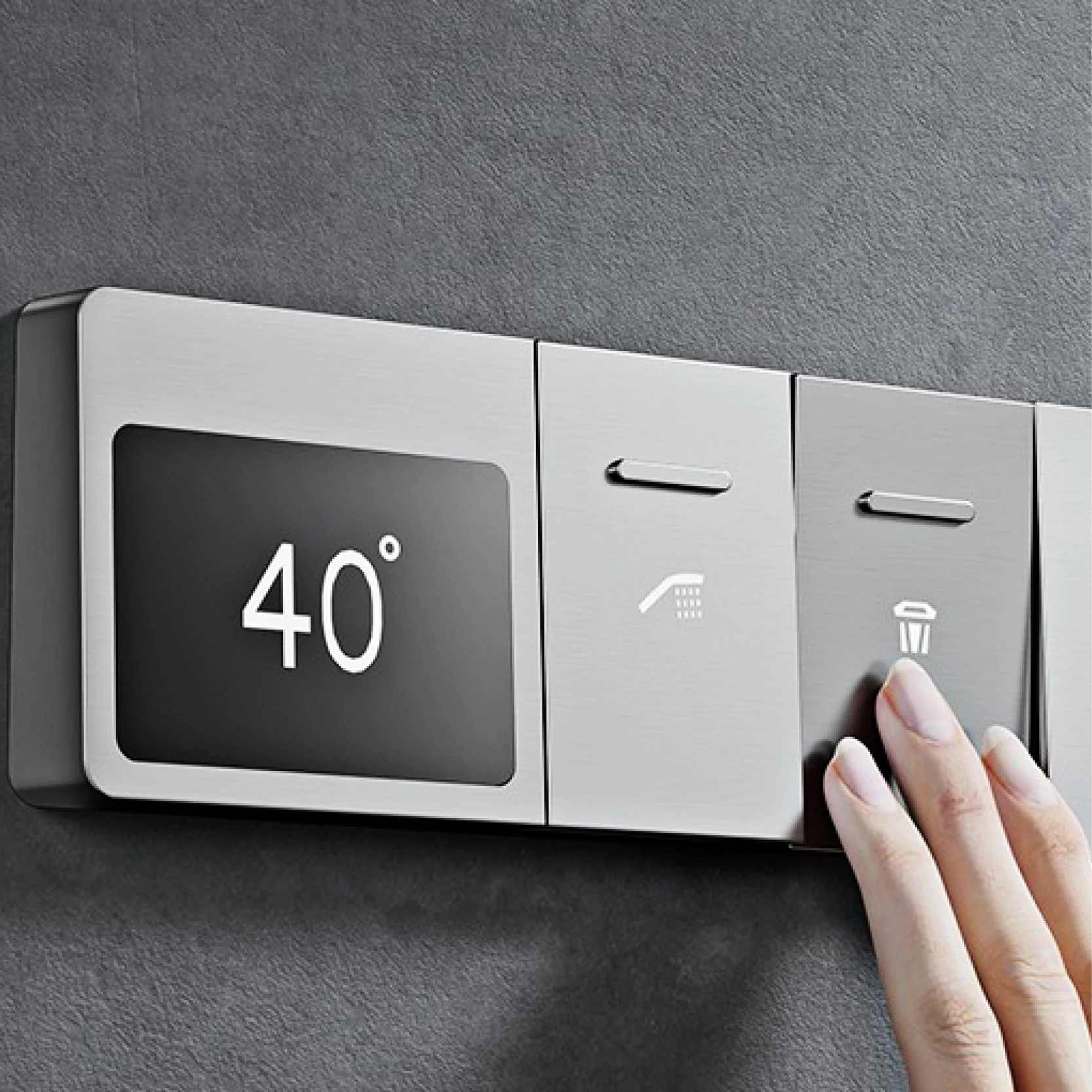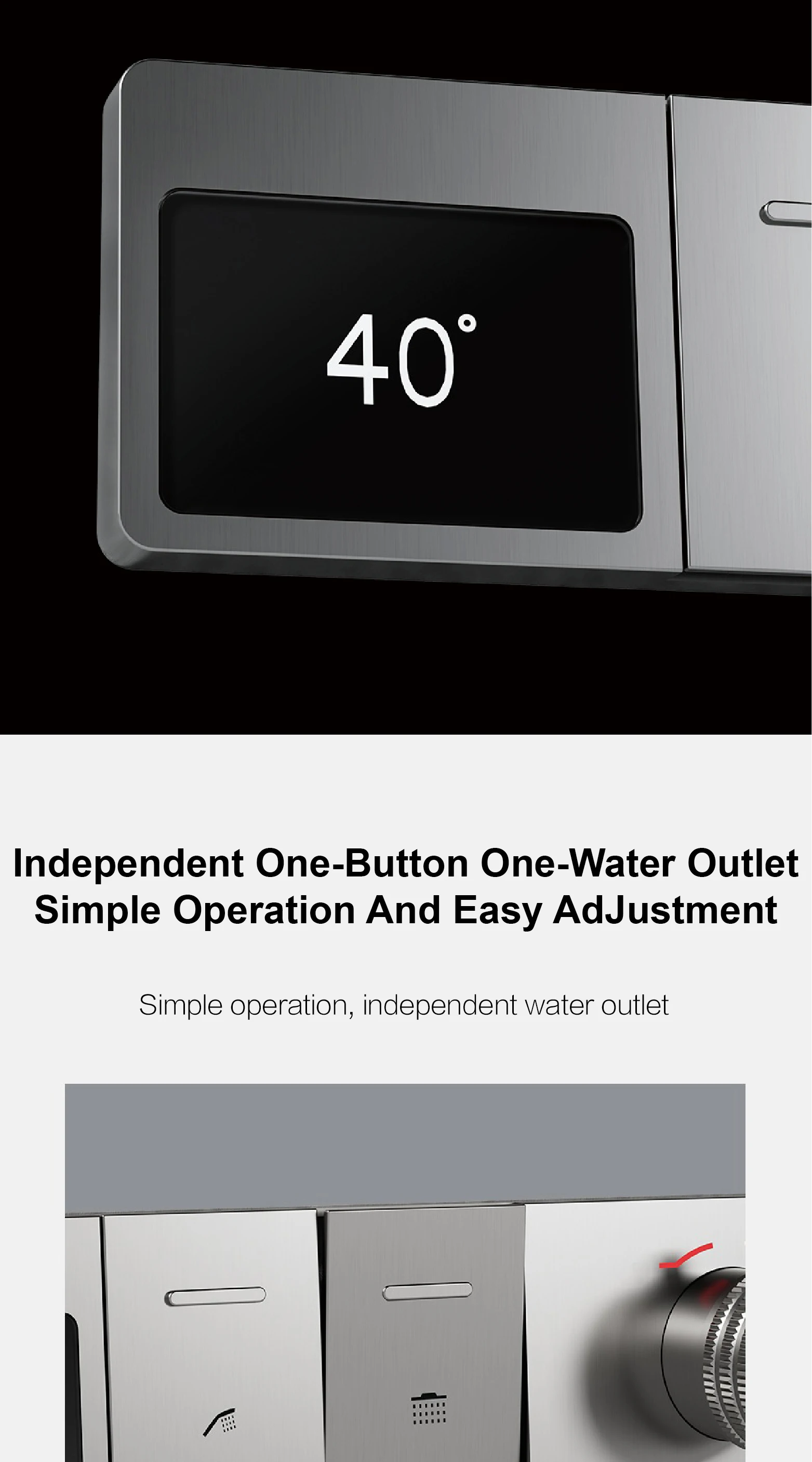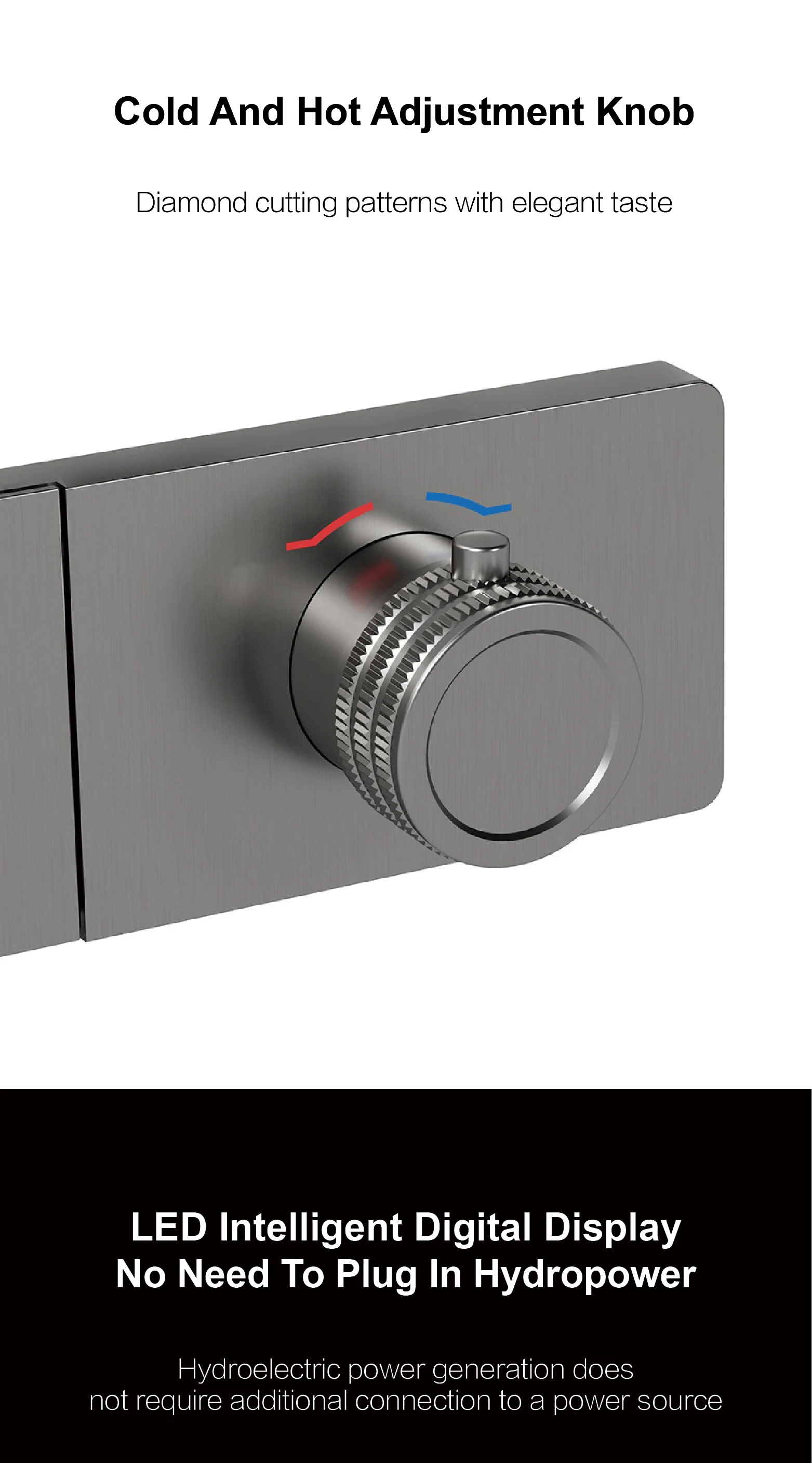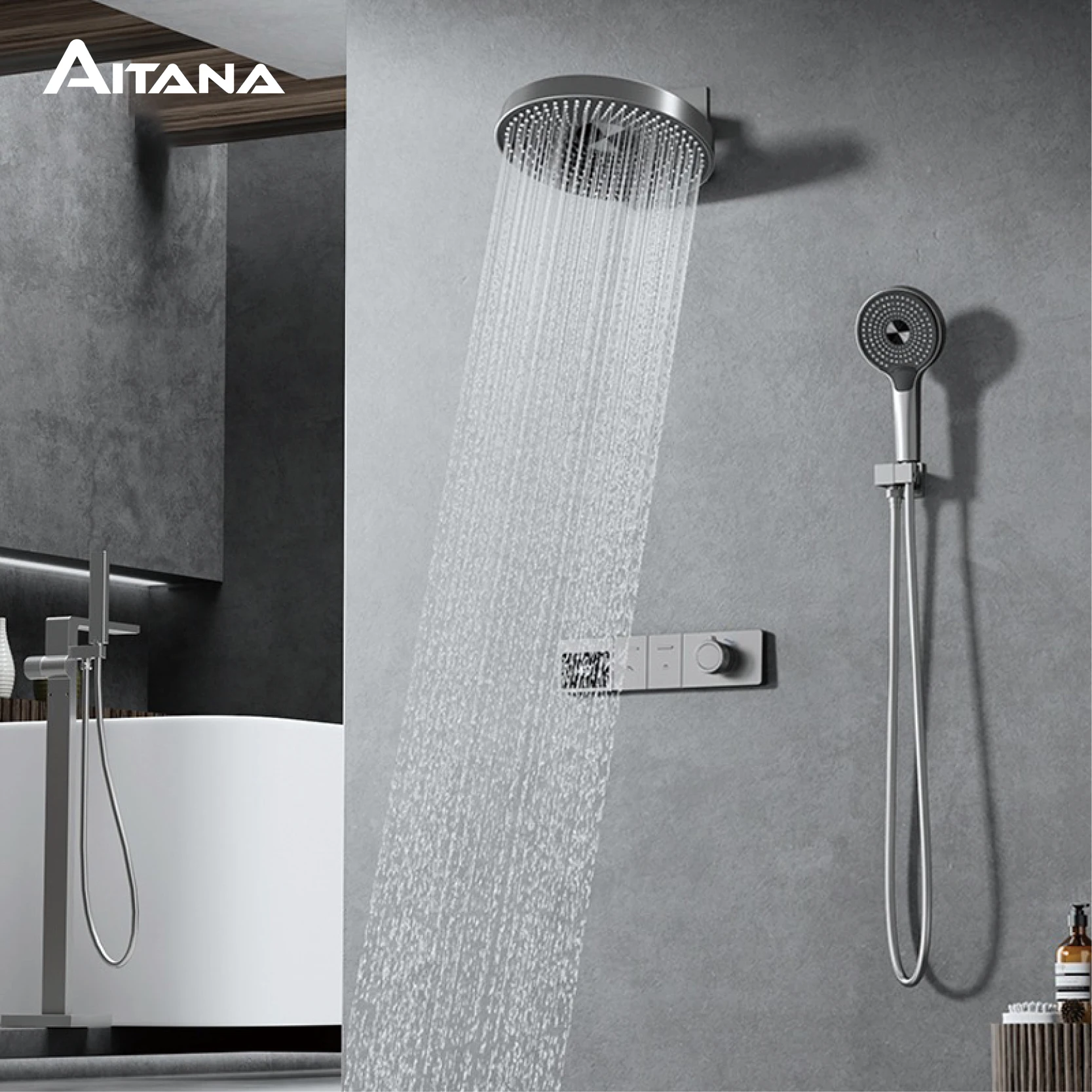 ระบบฝักบัวจอแสดงผลดิจิตอล LED ทองเหลืองสีเทาปืนหรูหราพร้อมดีไซน์ติดผนัง ก๊อกน้ําในห้องน้ําเรียบง่ายสําหรับน้ําร้อนและน้ําเย็น จาก 1 รีวิว