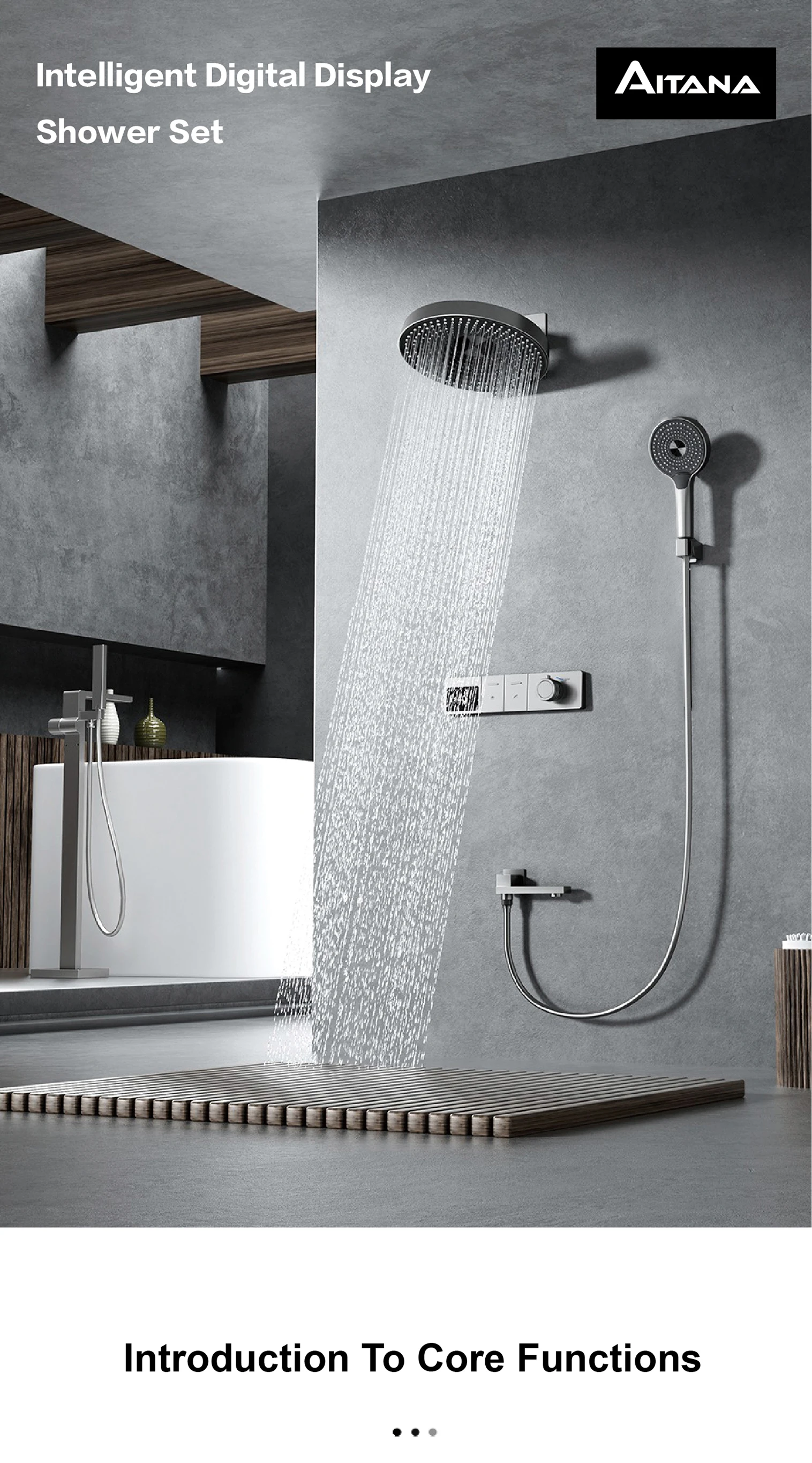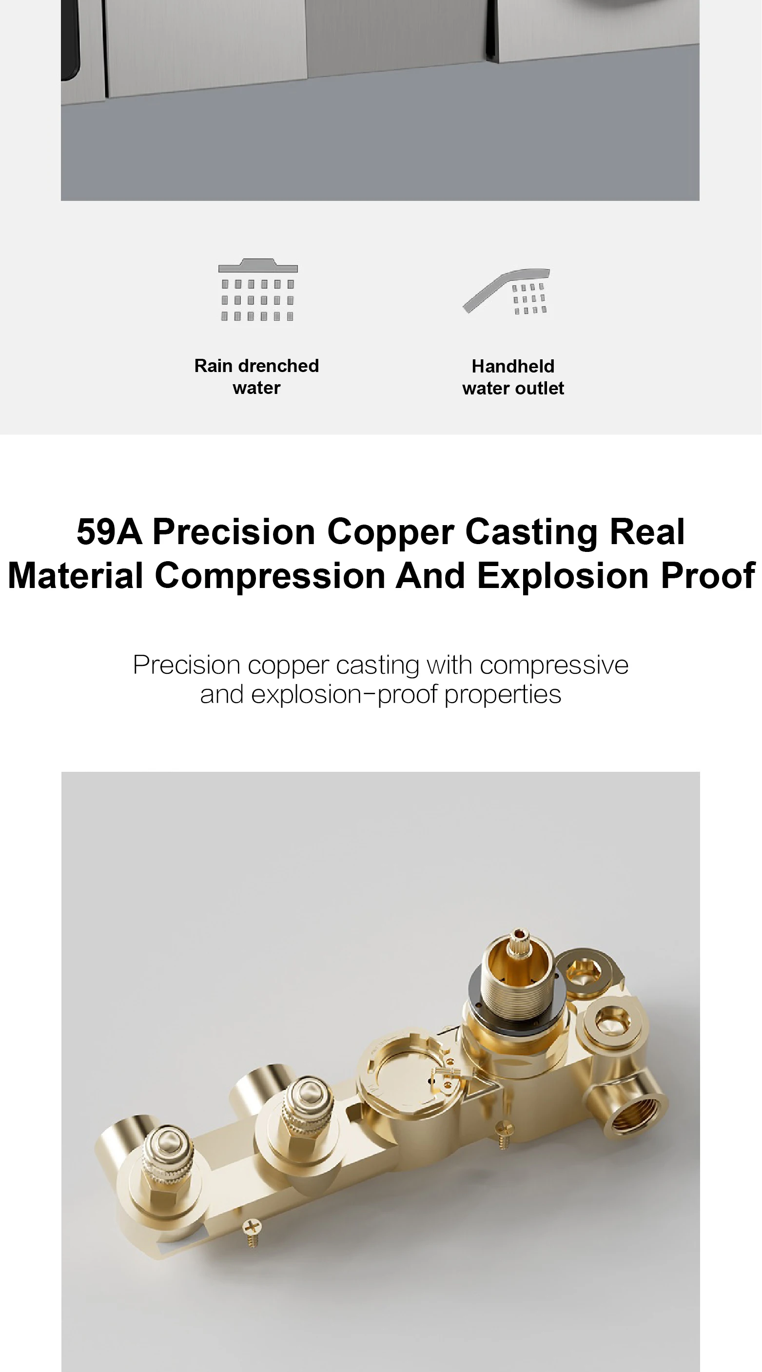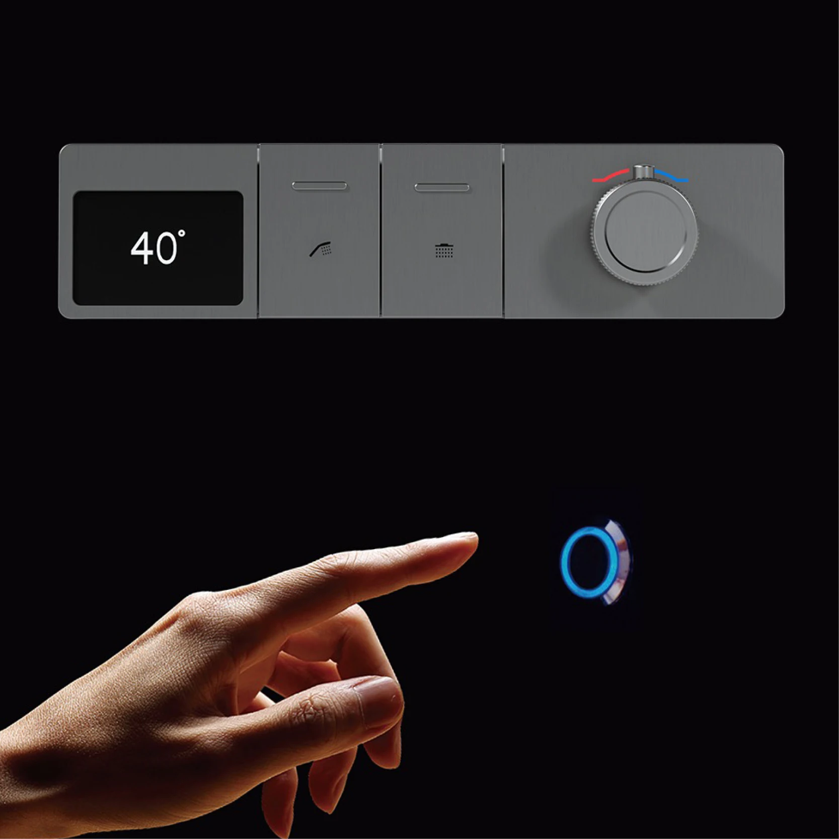 ระบบฝักบัวจอแสดงผลดิจิตอล LED ทองเหลืองสีเทาปืนหรูหราพร้อมดีไซน์ติดผนัง ก๊อกน้ําในห้องน้ําเรียบง่ายสําหรับน้ําร้อนและน้ําเย็น จาก 1 รีวิว