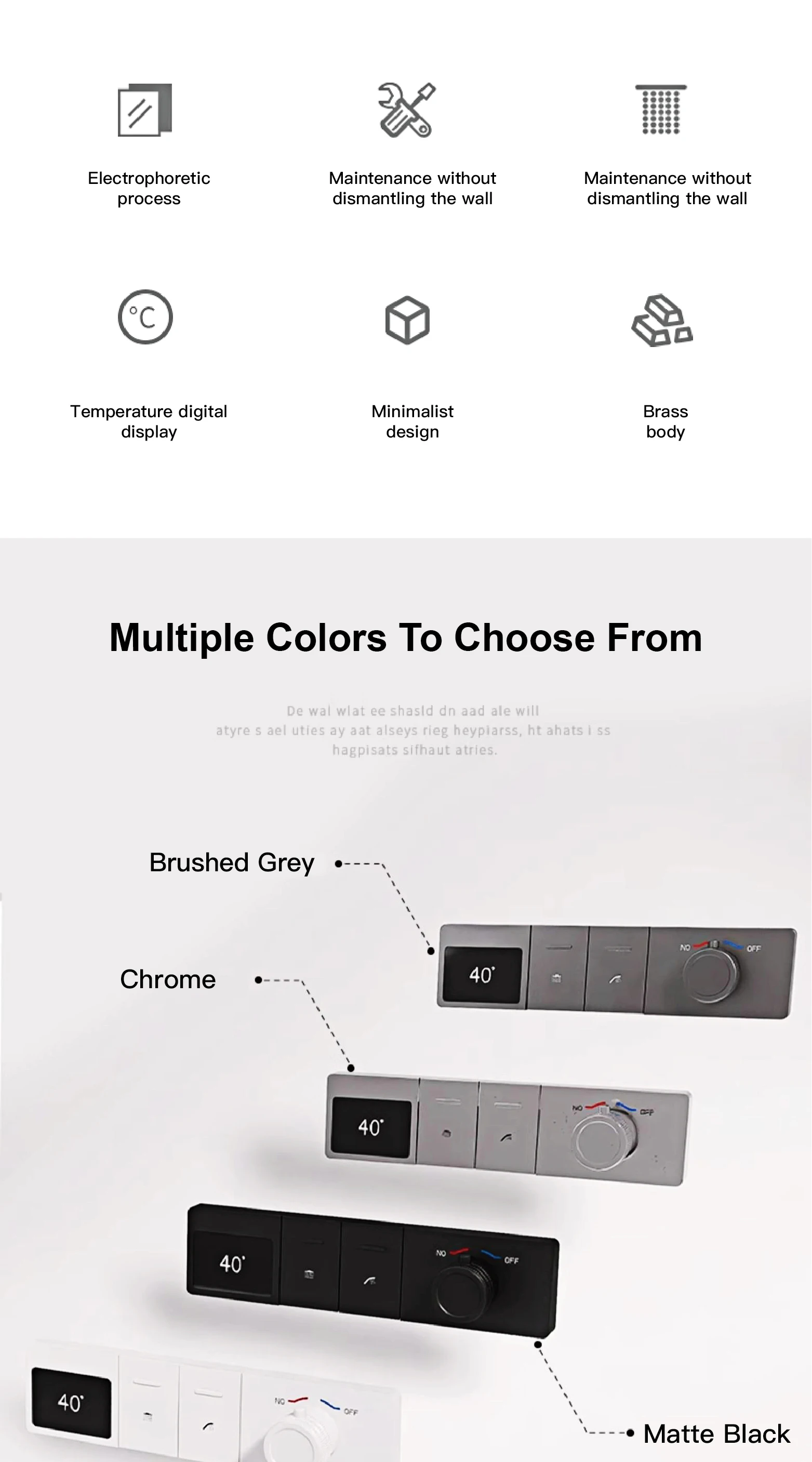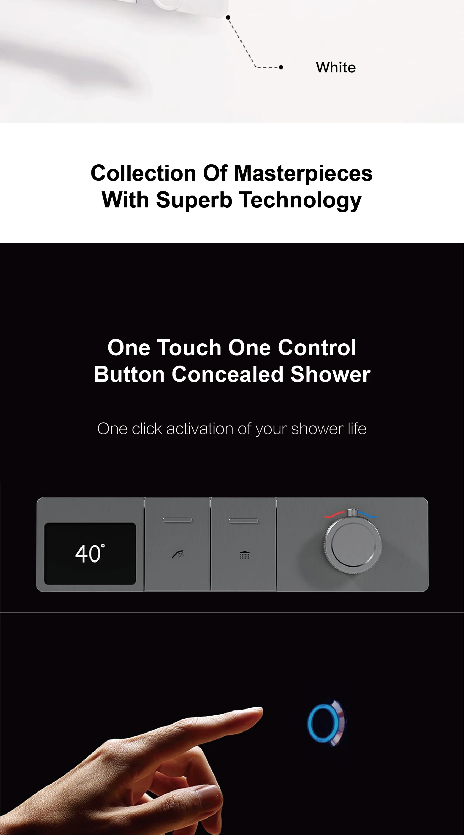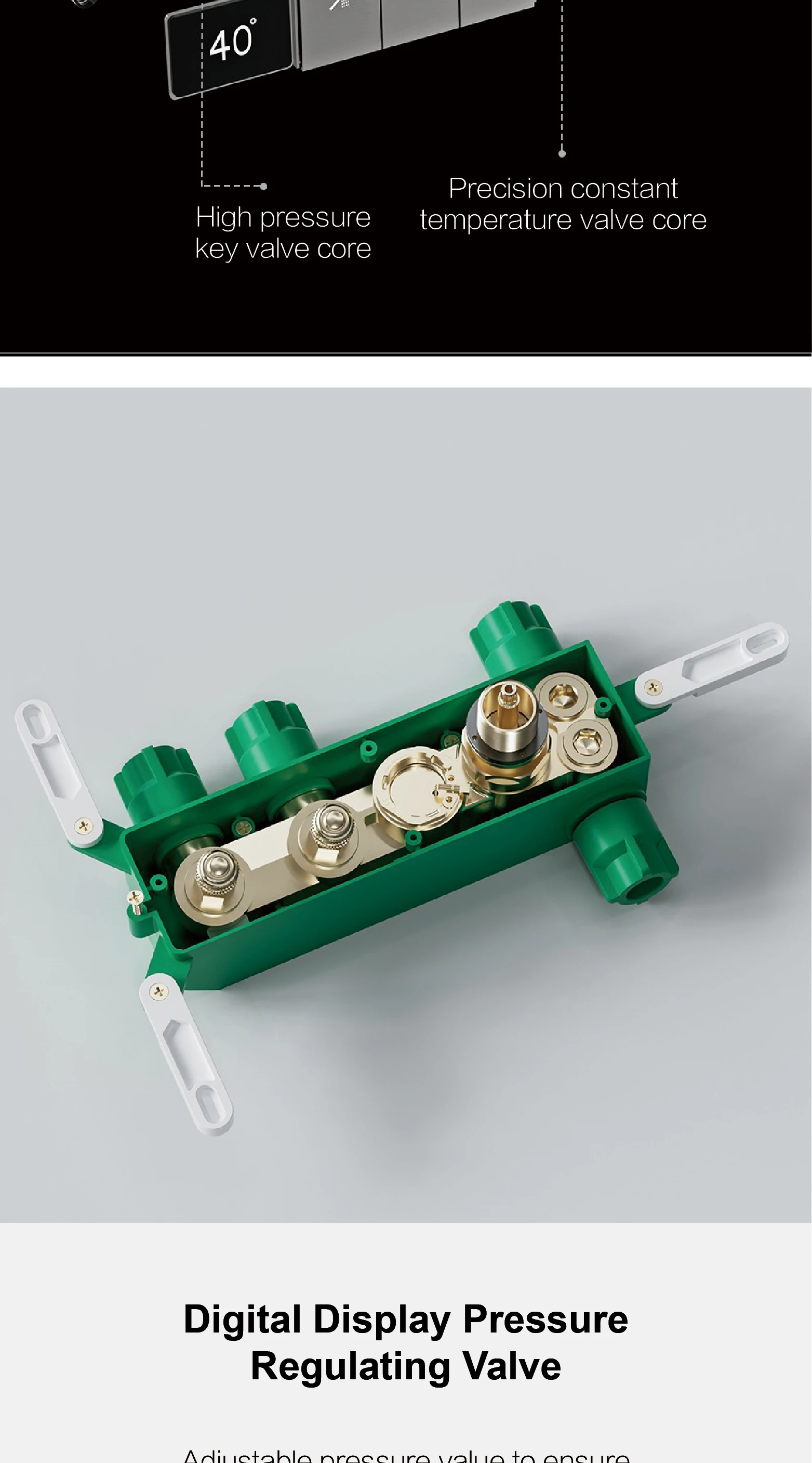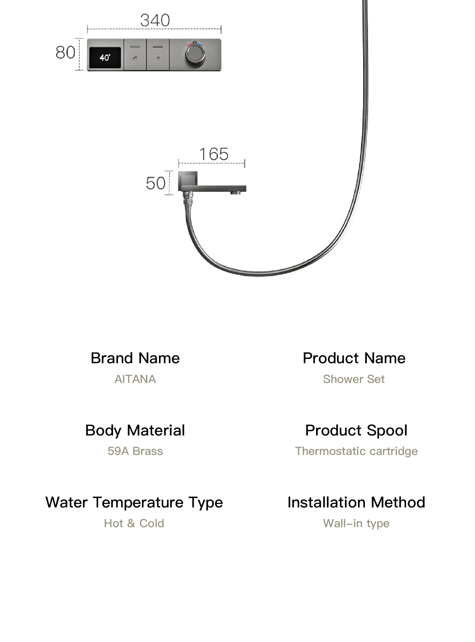 ระบบฝักบัวจอแสดงผลดิจิตอล LED ทองเหลืองสีเทาปืนหรูหราพร้อมดีไซน์ติดผนัง ก๊อกน้ําในห้องน้ําเรียบง่ายสําหรับน้ําร้อนและน้ําเย็น จาก 1 รีวิว