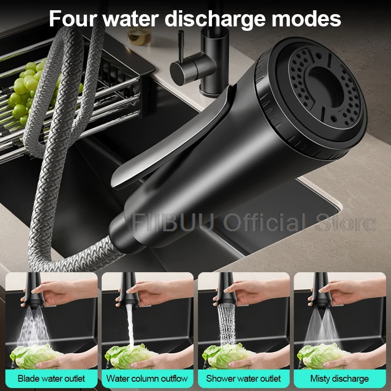 【Retractable faucet】Our retractable faucet is equipped with three adjustable strength levels, allowing you to effortlessly control the direction and intensity of the water flow.
