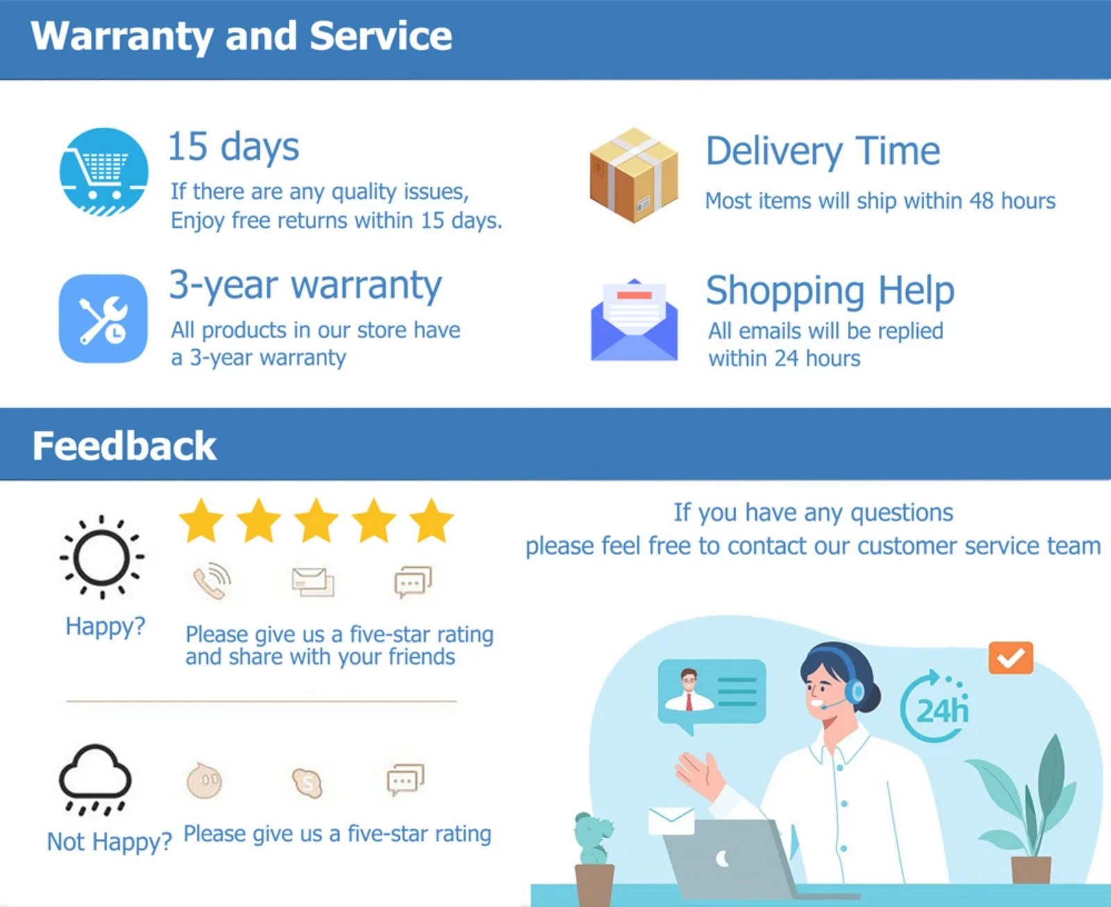 หากท่านไม่พอใจกับสินค้าไม่ว่าด้วยเหตุผลใดก็ตาม เราขอเชิญท่านตรวจสอบนโยบายการคืนเงินและการคืนสินค้าของเรา