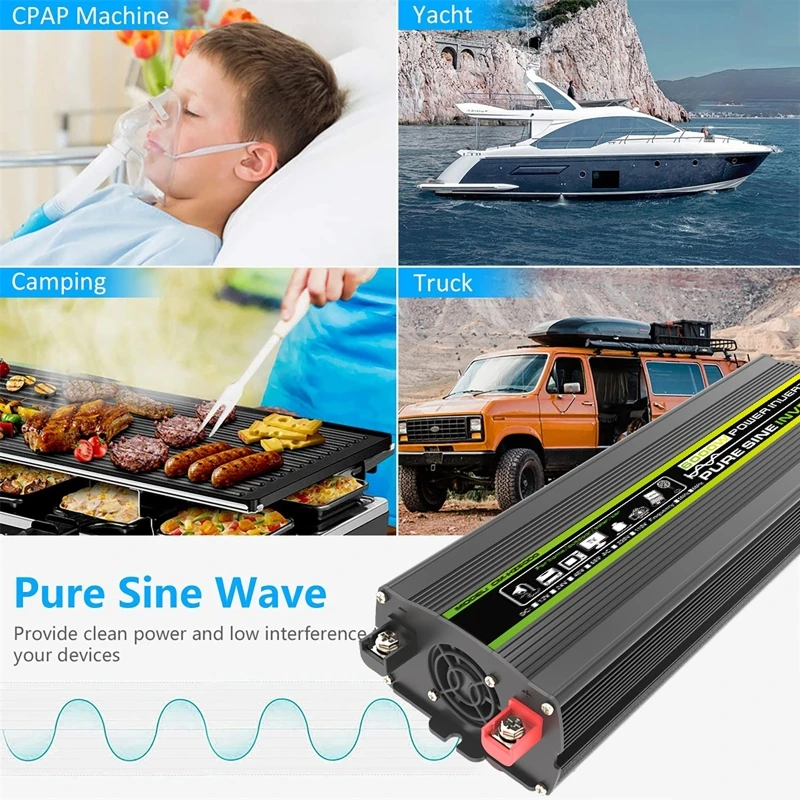 6000W DC12/24V to AC 220V Pure Sine Wave อินเวอร์เตอร์แรงดันไฟฟ้า Transformer Converter ดิจิตอลจอแสดงผลรถบ้านกลางแจ้ง 50/60Hz