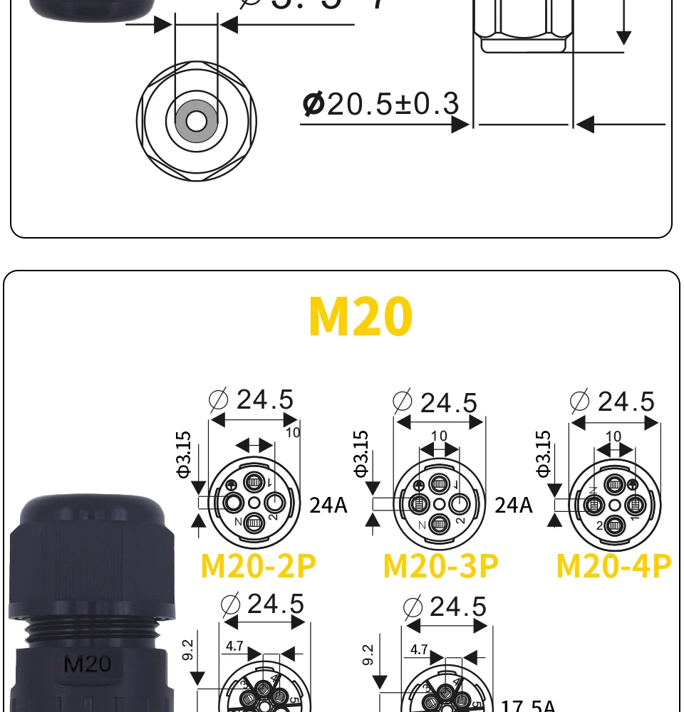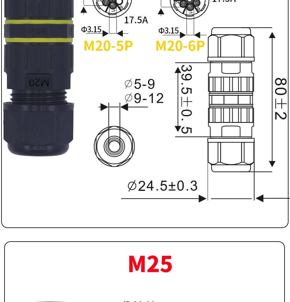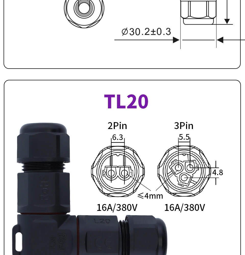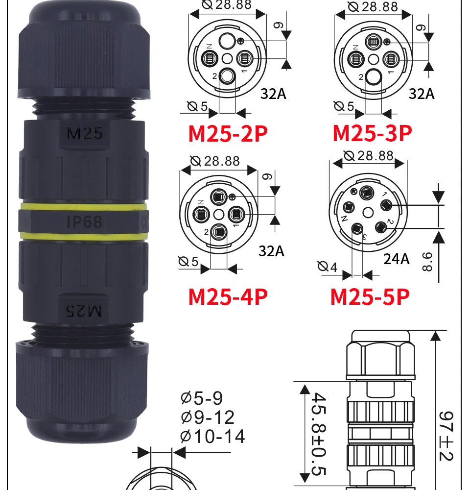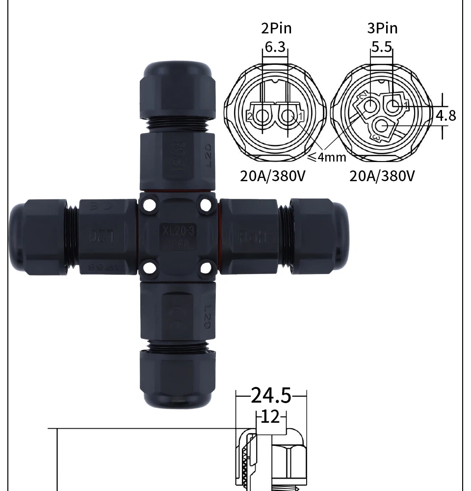 กล่องต่อสายไฟฟ้ากันน้ำสำหรับภายนอกอาคาร แบบเสียบเร็ว 2/3/4/5/6 ขา สำหรับการต่อสายไฟที่ทนทาน