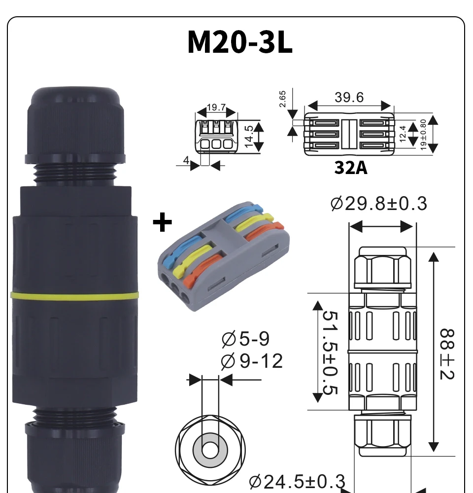 กล่องต่อสายไฟฟ้ากันน้ำสำหรับภายนอกอาคาร แบบเสียบเร็ว 2/3/4/5/6 ขา สำหรับการต่อสายไฟที่ทนทาน จาก 1 รีวิว
