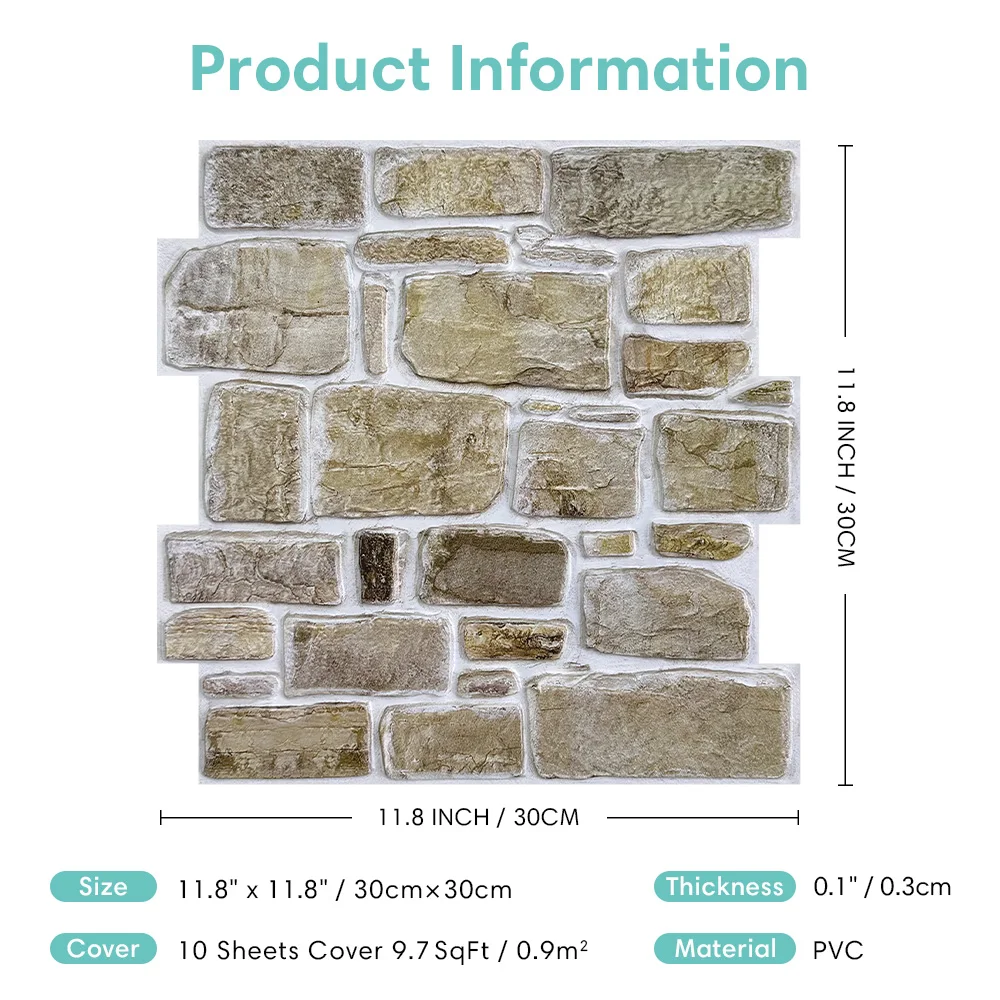 10 ชิ้น 3D Faux หิน Self – กาวผนังแผง, สไตล์วินเทจตกแต่งผนังสําหรับห้องครัว, ห้องนั่งเล่น, ห้องนอน, home Wall Decor