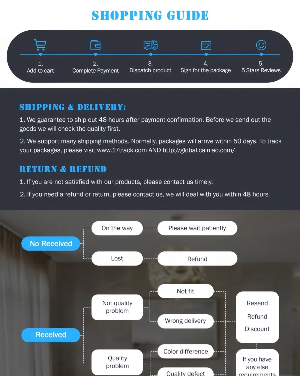 หากท่านไม่พอใจกับสินค้าไม่ว่าด้วยเหตุผลใดก็ตาม เราขอเชิญท่านตรวจสอบนโยบายการคืนเงินและการคืนสินค้าของเรา
