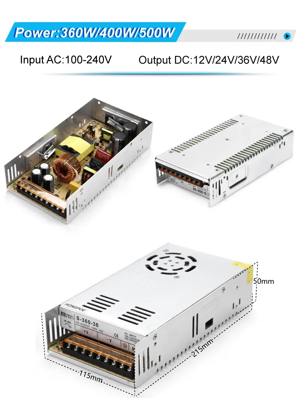12V 24V 36V 48V 250W 360W 400W 500W 600W แหล่งจ่ายไฟหม้อแปลงไฟฟ้า AC DC SMPS สําหรับ LED Strip Light กล้องวงจรปิดมอเตอร์