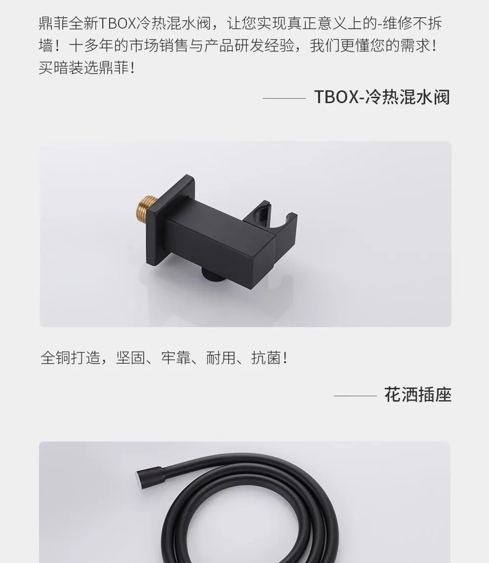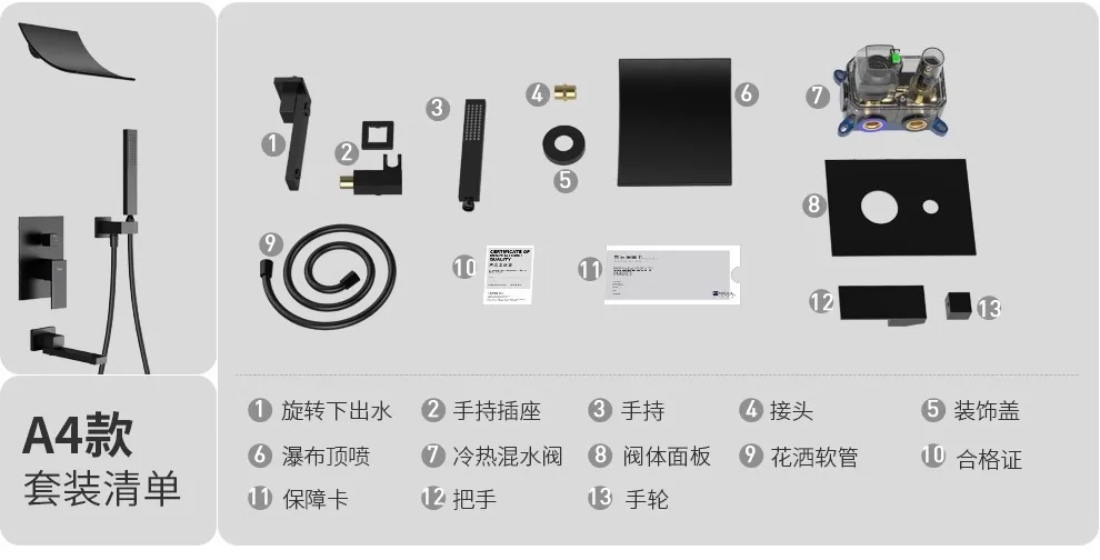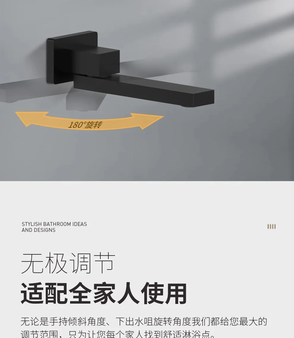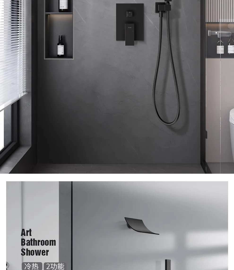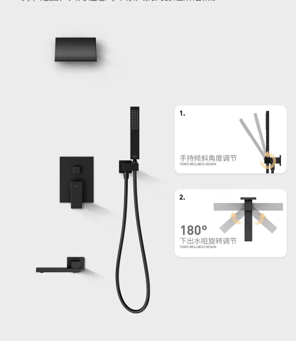 Matte Black Thermostatic Rain น้ําตกก๊อกน้ําชุดปกปิด Thermostatic Mixer Tap ติดผนังระบบ