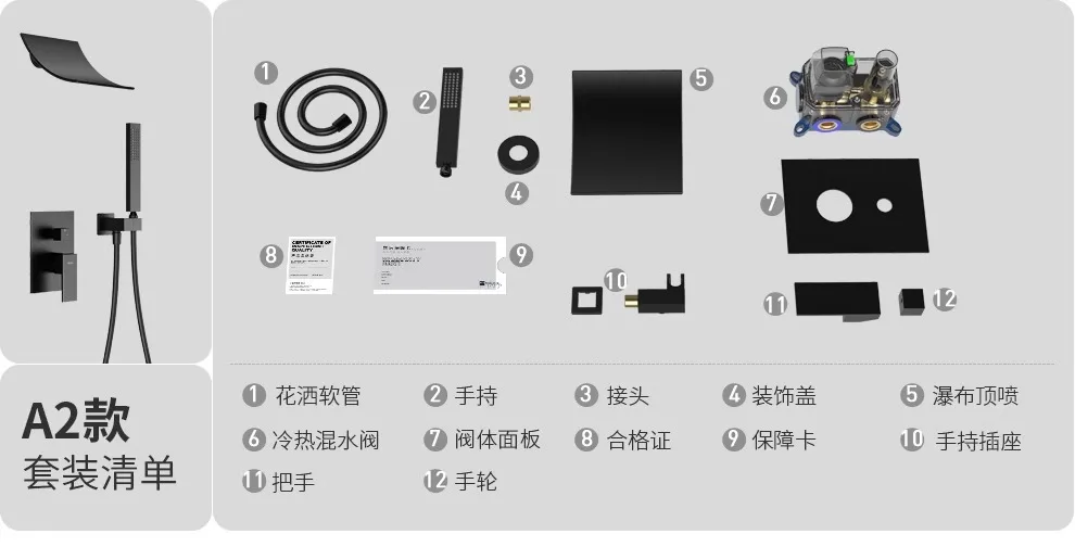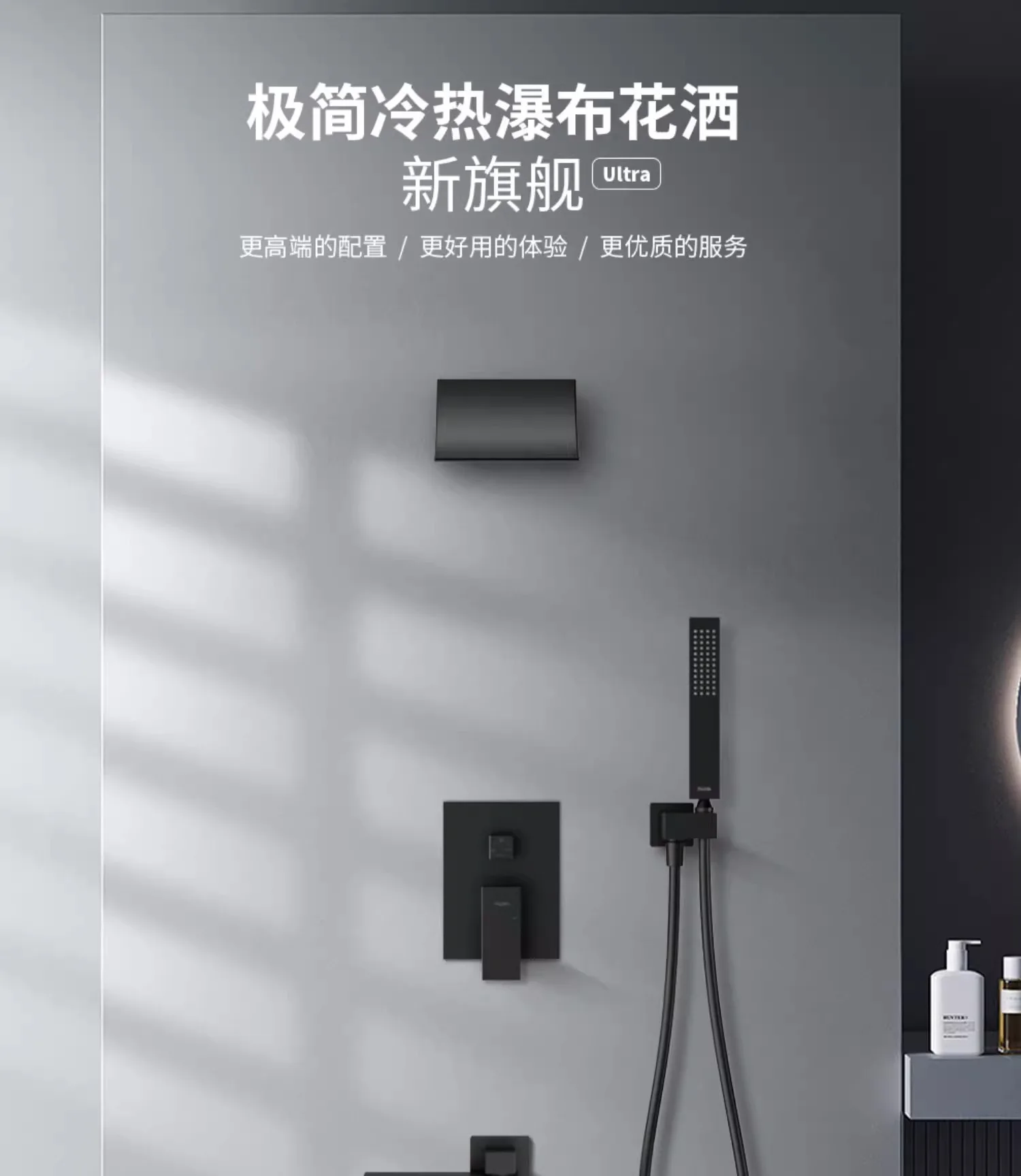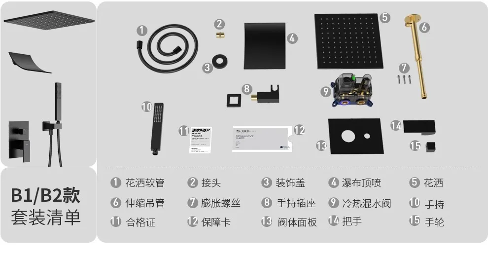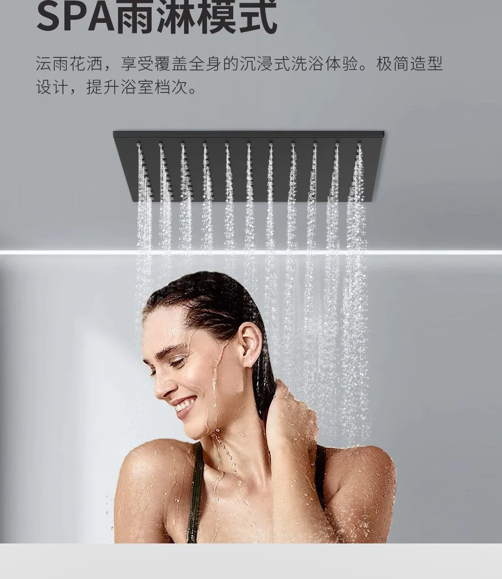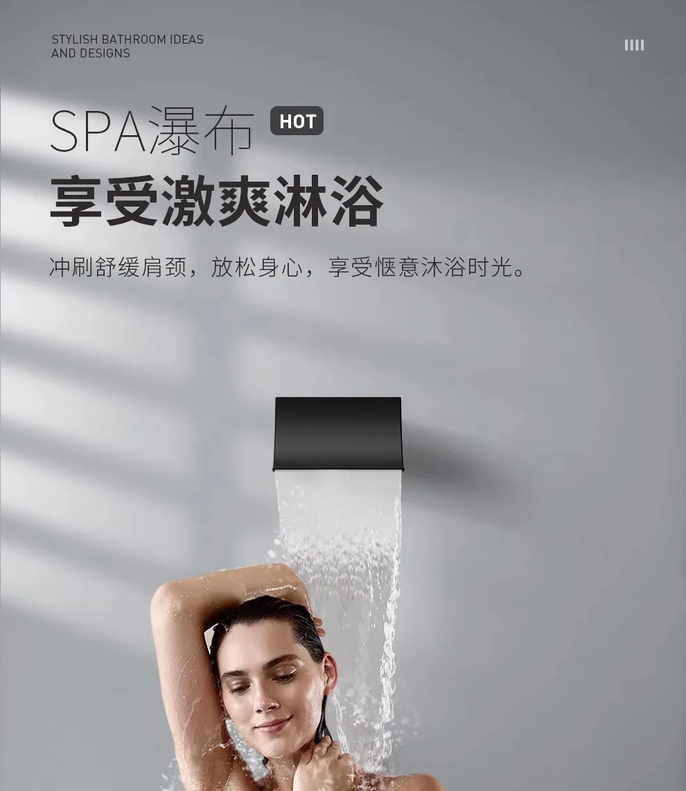 Matte Black Thermostatic Rain น้ําตกก๊อกน้ําชุดปกปิด Thermostatic Mixer Tap ติดผนังระบบ