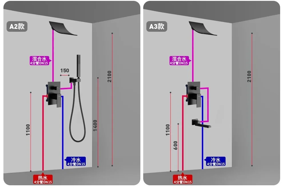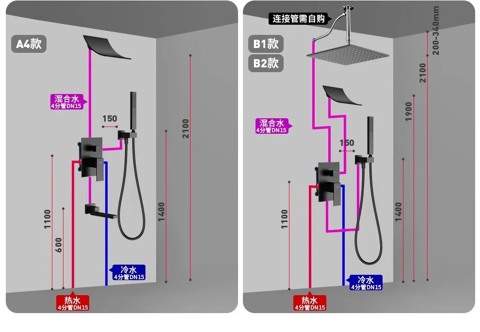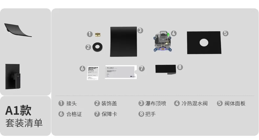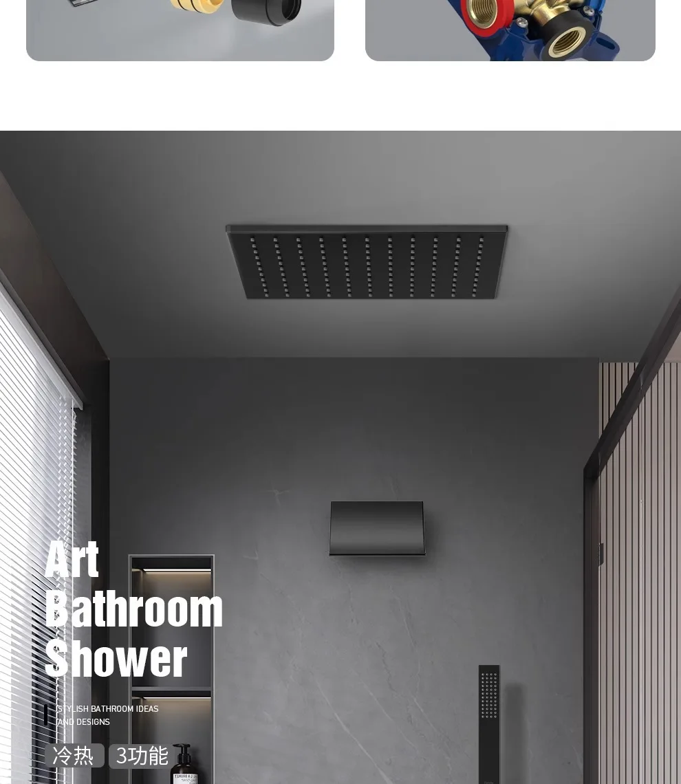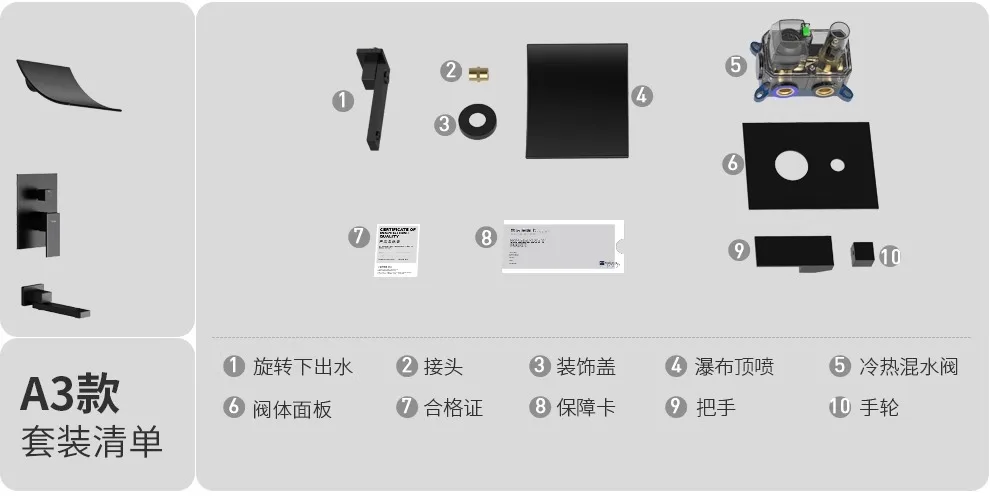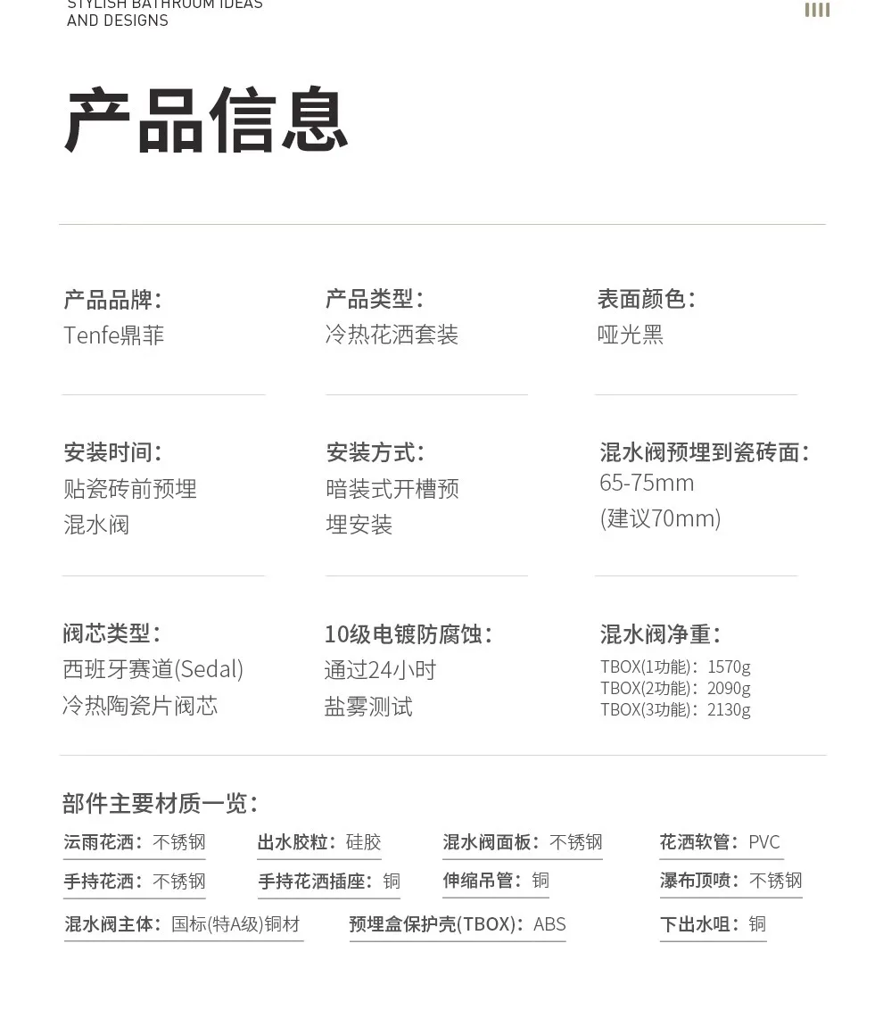 Matte Black Thermostatic Rain น้ําตกก๊อกน้ําชุดปกปิด Thermostatic Mixer Tap ติดผนังระบบ
