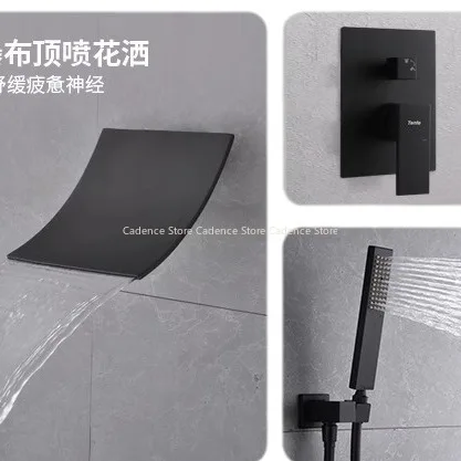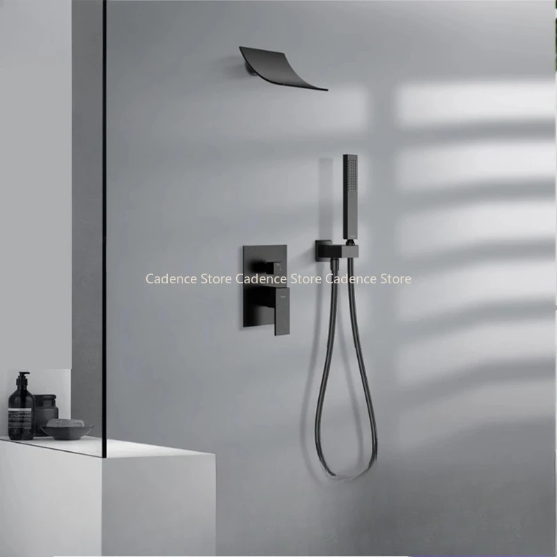 Matte Black Thermostatic Rain น้ําตกก๊อกน้ําชุดปกปิด Thermostatic Mixer Tap ติดผนังระบบ