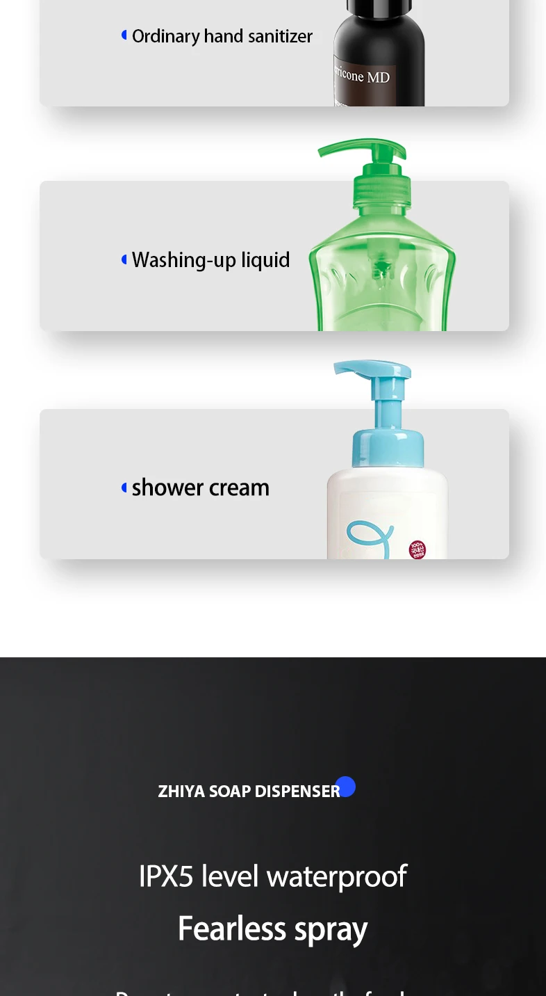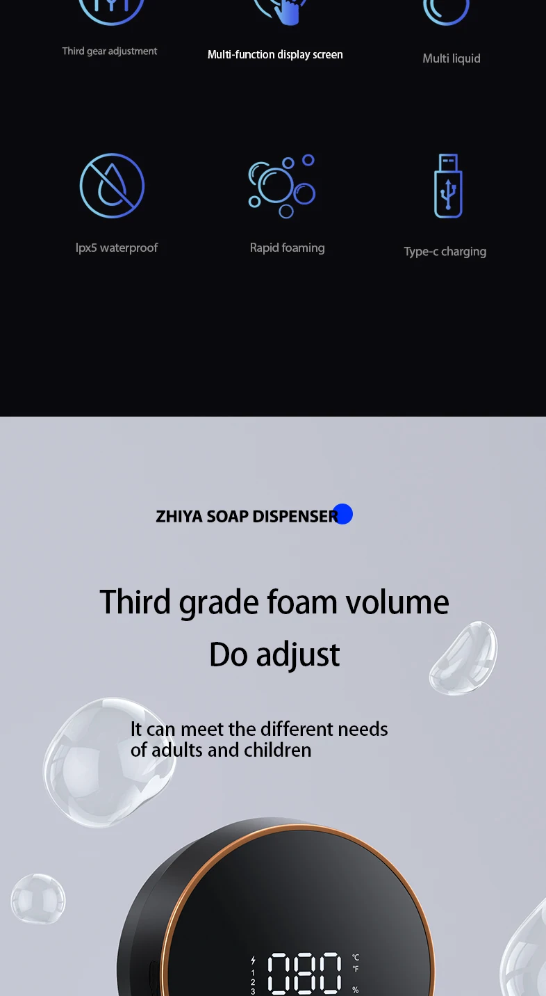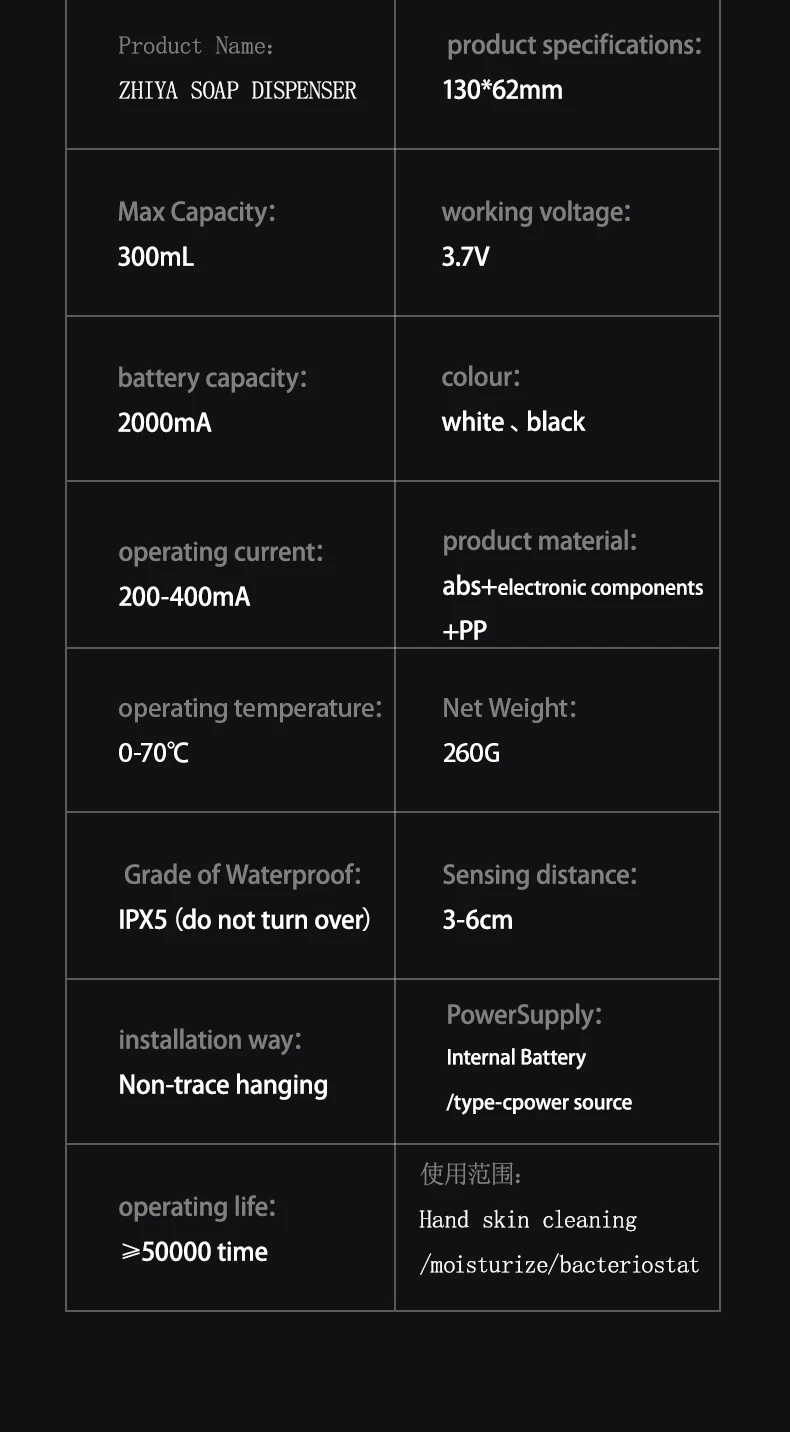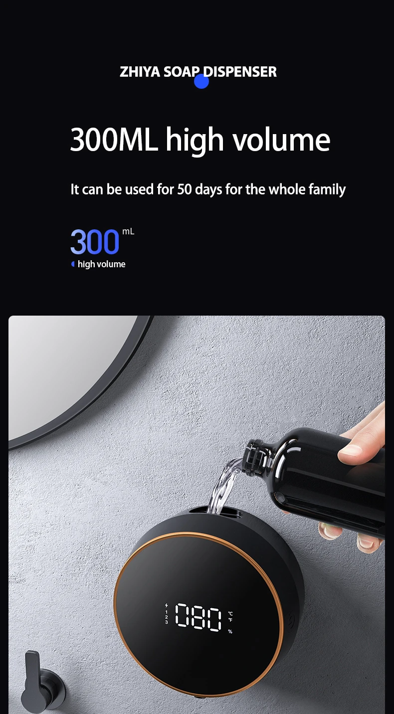 【ความจุขนาดใหญ่】ความจุขนาดใหญ่ 300 มล. รีฟิลหนึ่งครั้งสามารถปล่อยโฟมได้ 500 ครั้ง ซึ่งทั้งครอบครัวสามารถใช้ได้ประมาณ 50 วันกันน้ำระดับ IPX5 ไม่ต้องกลัวสภาพแวดล้อมที่ชื้น (โปรดอย่าทำความสะอาดเครื่องจ่ายสบู่ด้วยน้ำโดยตรง)