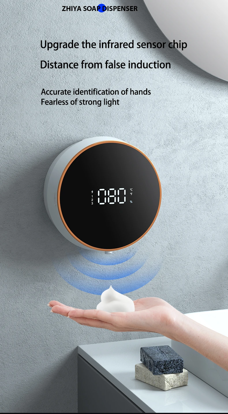 【ไร้สัมผัสและทำความสะอาดล้ำลึก】เครื่องจ่ายสบู่โฟมมาพร้อมชิปเซ็นเซอร์อินฟราเรดที่พัฒนาขึ้นใหม่ พื้นที่ตรวจจับ 3-6 ซม. และปล่อยฟองสบู่ภายใน 0.25 วินาทีสร้างฟองหนาและละเอียดที่ปกปิดผิวได้ดีขึ้นและทำความสะอาดผิวได้ล้ำลึก