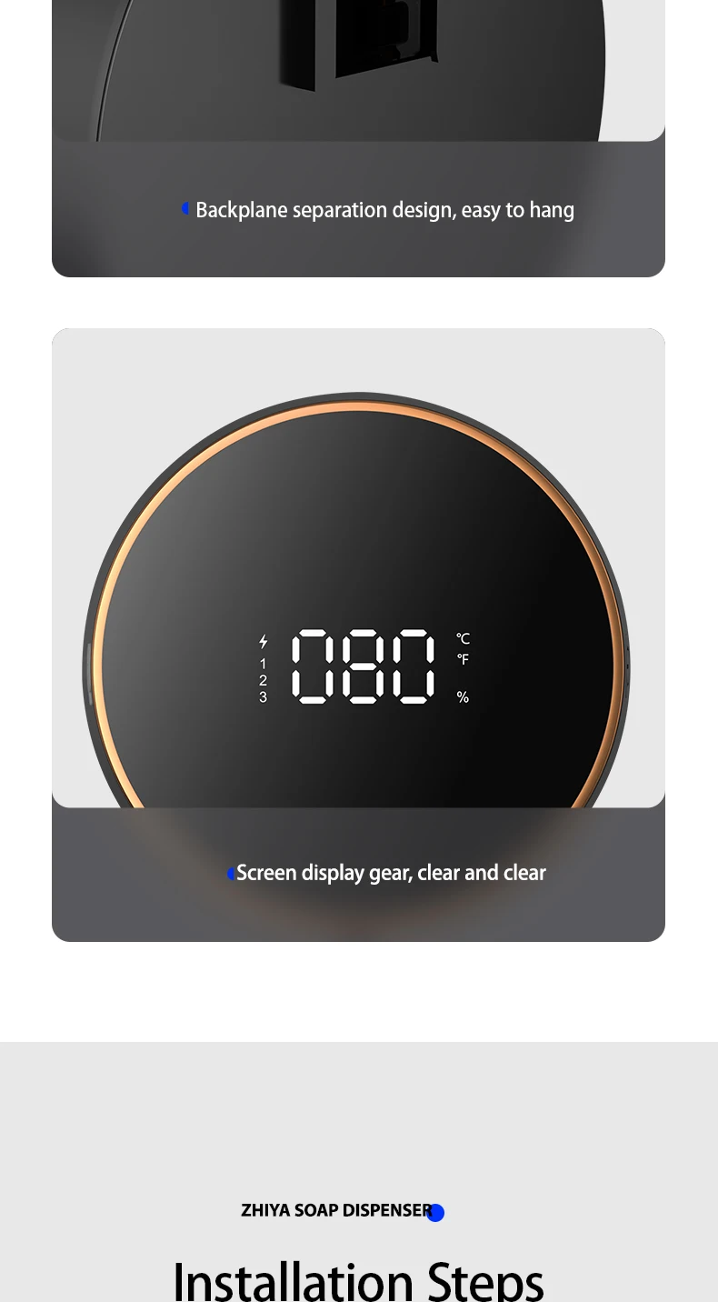 【ติดตั้งและใช้งานง่าย】เครื่องจ่ายสบู่อัตโนมัติที่ออกแบบมาพร้อมแผ่นรองด้านหลังแยกต่างหาก สามารถติดตั้งบนผนังได้อย่างง่ายดายโดยไม่ต้องเจาะผนัง ช่องเติมขนาดใหญ่เติมของเหลวได้ง่าย 45 ° มุมเอียงแบบไบโอนิก โฟมออกโดยไม่ติดผนัง