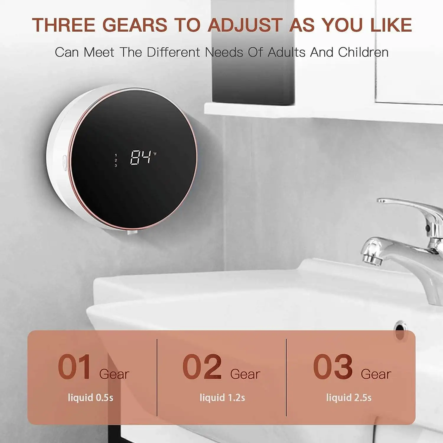 เครื่องจ่ายสบู่อัตโนมัติแบบติดผนัง 300 มล. แบบไม่ต้องสัมผัส ปรับได้ 3 ระดับ สำหรับโฟม/ของเหลว กันน้ำระดับ IPX5 พร้อมเซ็นเซอร์อินฟราเรดอัจฉริยะ