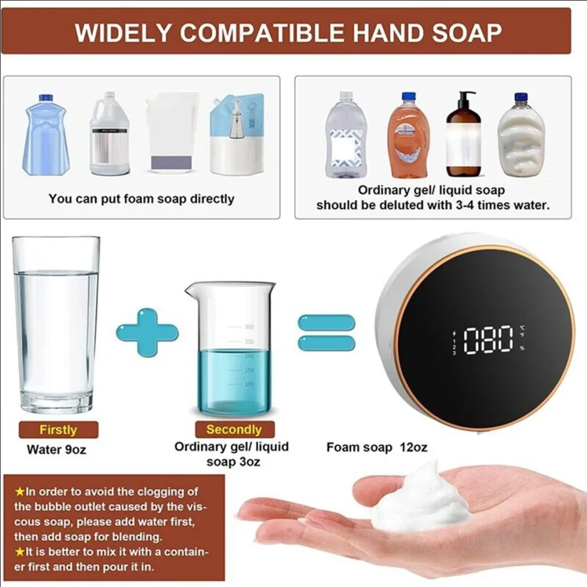 【ติดตั้งและใช้งานง่าย】เครื่องจ่ายสบู่อัตโนมัติที่ออกแบบมาพร้อมแผ่นรองด้านหลังแยกต่างหาก สามารถติดตั้งบนผนังได้อย่างง่ายดายโดยไม่ต้องเจาะผนัง ช่องเติมขนาดใหญ่เติมของเหลวได้ง่าย 45 ° มุมเอียงแบบไบโอนิก โฟมออกโดยไม่ติดผนัง