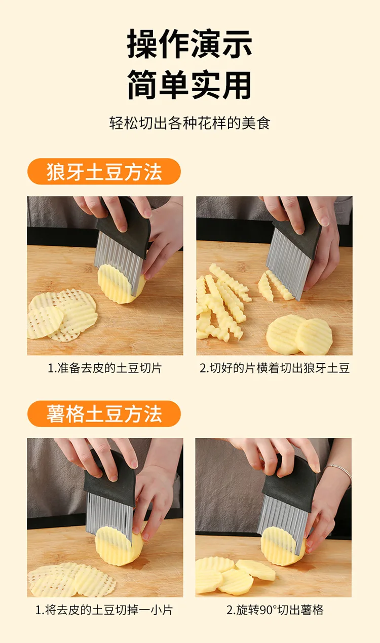 สแตนเลสสตีลเครื่องตัดมันฝรั่ง WAVE มีดเครื่องตัดมันฝรั่งเครื่องใช้ในครัวเรือนมัลติฟังก์ชั่เครื่องตัดผักเครื่องมือห้องครัว