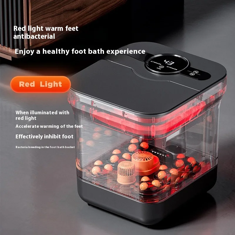 เครื่องนวดเท้าไฟฟ้าระดับมืออาชีพพร้อมระบบทำความร้อน, การบำบัดด้วยแสงสีแดง และหน้าจอสัมผัส LCD – อ่างแช่เท้าเพื่อการผ่อนคลายที่บ้าน