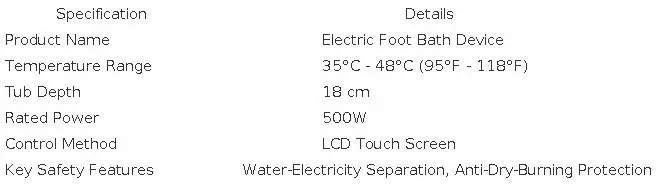 ระบบทำความร้อนอัจฉริยะและการควบคุมอุณหภูมิคงที่: สัมผัสประสบการณ์การแช่เท้าที่อบอุ่นสมบูรณ์แบบทุกครั้งระบบทำความร้อนประสิทธิภาพสูง 500 วัตต์ในตัว ช่วยให้น้ำร้อนขึ้นอย่างรวดเร็วและรักษาอุณหภูมิให้คงที่ระหว่าง 35°C ถึง 48°ค (95°เอฟ – 118°เอฟ)