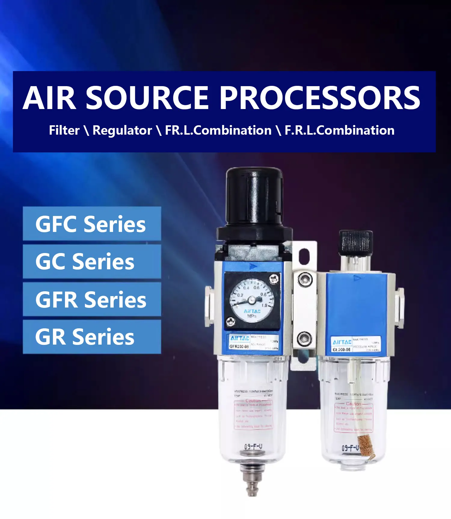 แอร์แทค GRGFRGCGFCGFGL-200/300/400/600 ชุดกรองอากาศพร้อมตัวแยกน้ำมัน-น้ำและวาล์วปรับแรงดัน