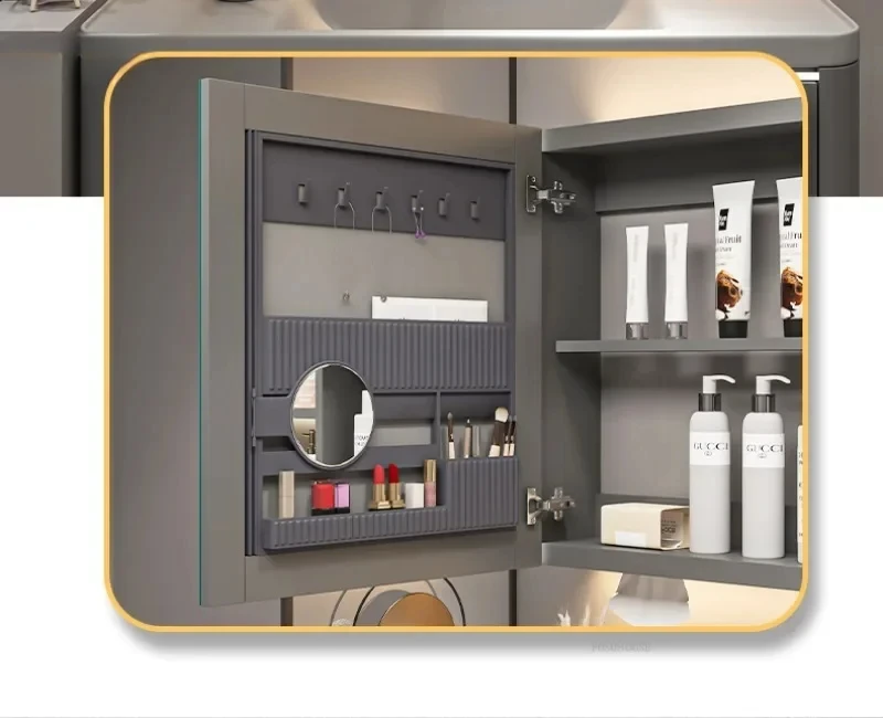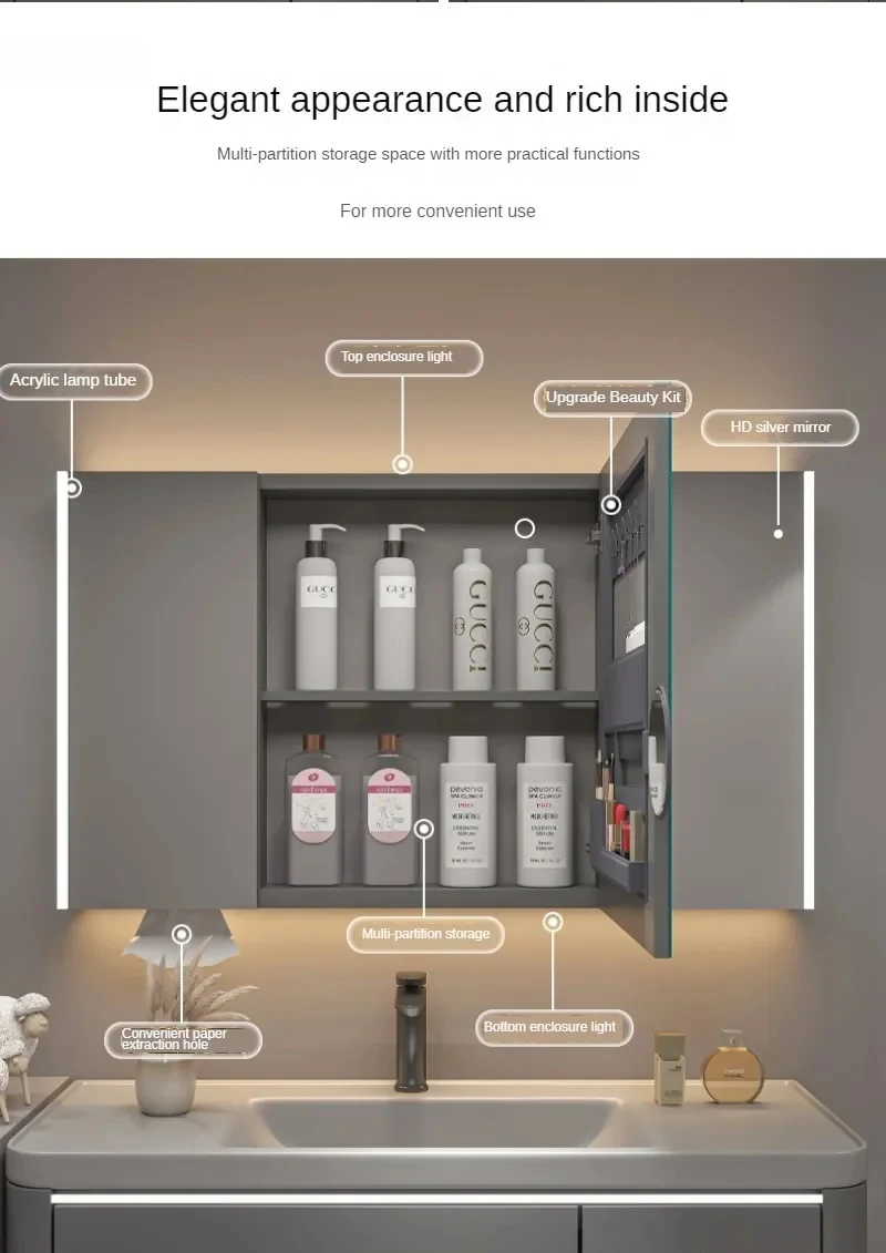 ตู้ใต้อ่างล้างหน้าสไตล์นอร์ดิก เฟอร์นิเจอร์บ้านทันสมัย อ่างล้างหน้าเซรามิกอัจฉริยะแบบรวม ตู้กระจกแบบรวม
