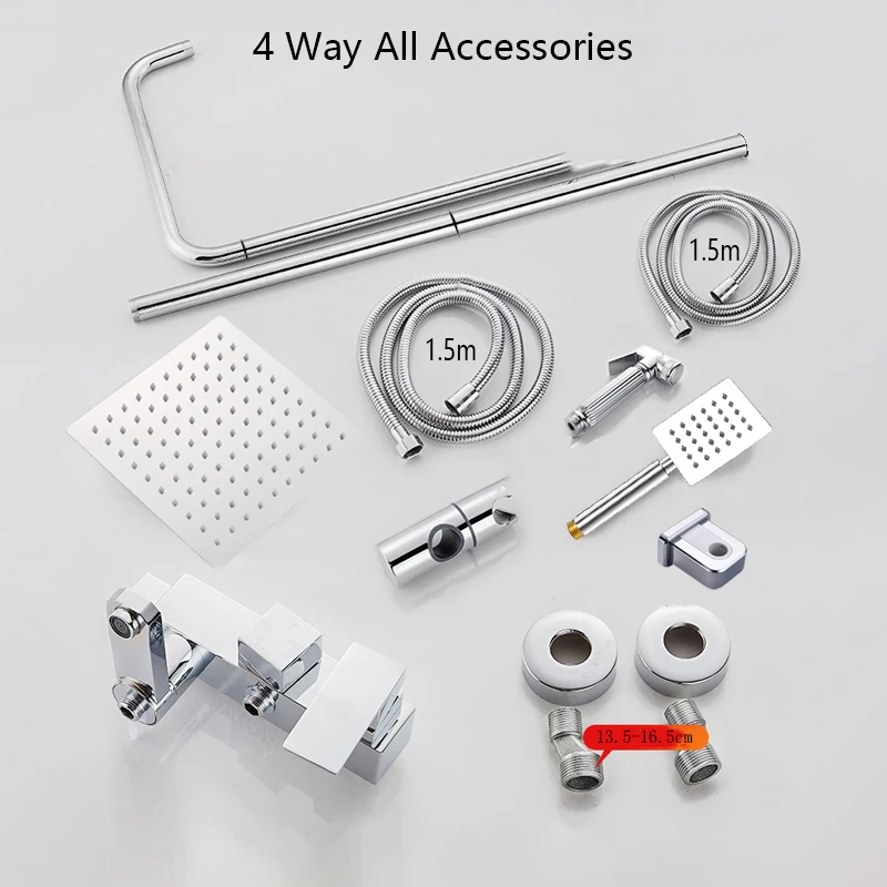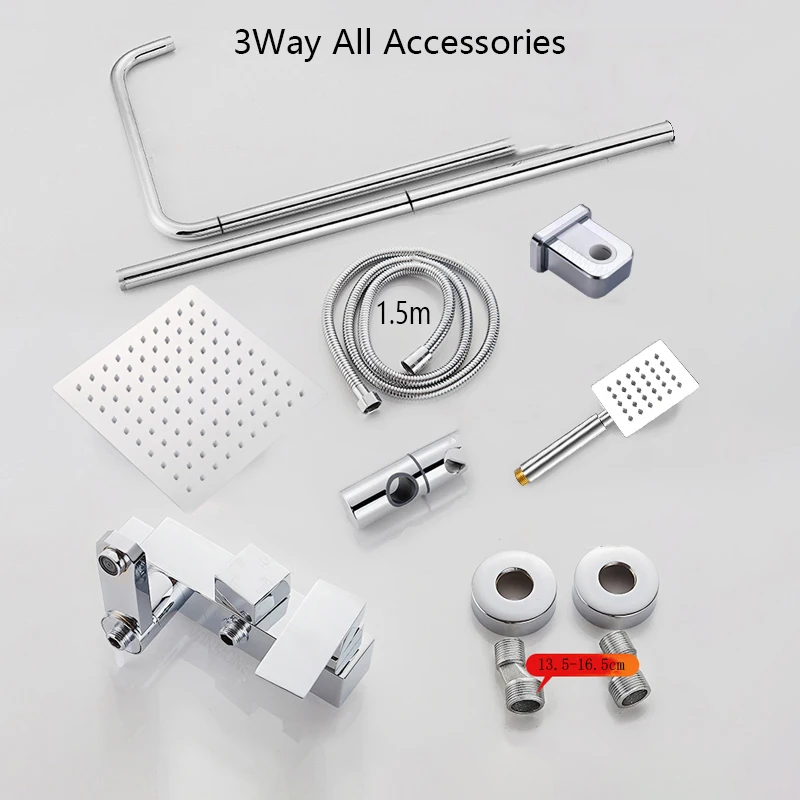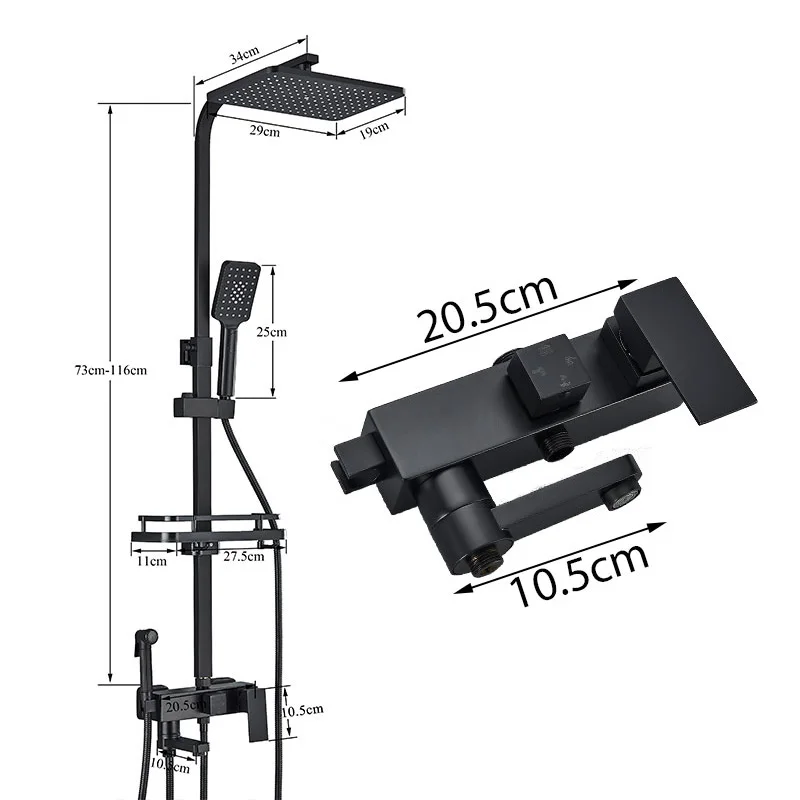 สีดําทองห้องน้ําชุดฝักบัวทองเหลืองร้อนเย็นห้องน้ําระบบก๊อกน้ําอุปกรณ์เสริมสแควร์หัวฝักบัว