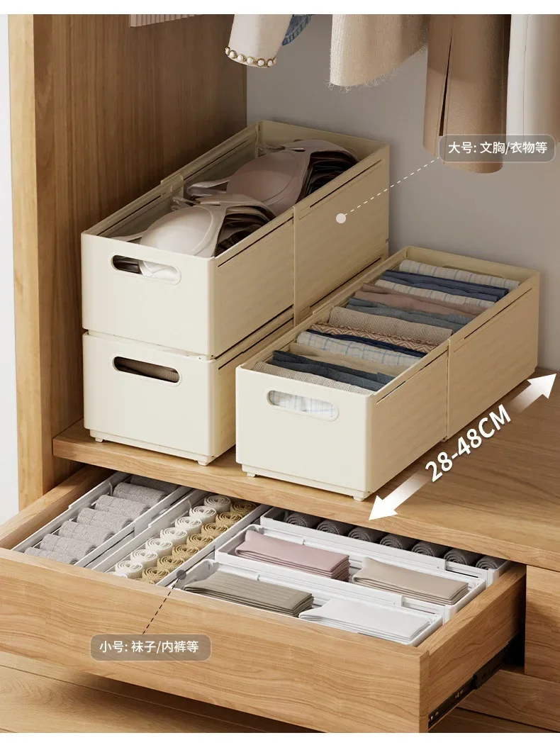 ลิ้นชักกล่อง Home Retractable Sorting ห้องครัวช่องชุดชั้นในเดสก์ท็อปช้อนส้อมกล่องเก็บการจําแนกถุงเท้ากล่อง