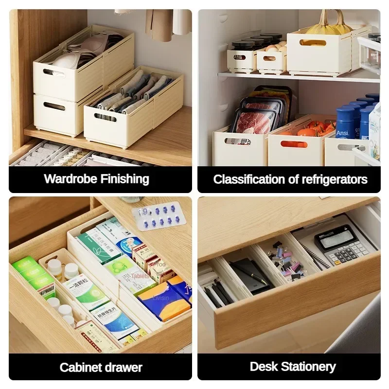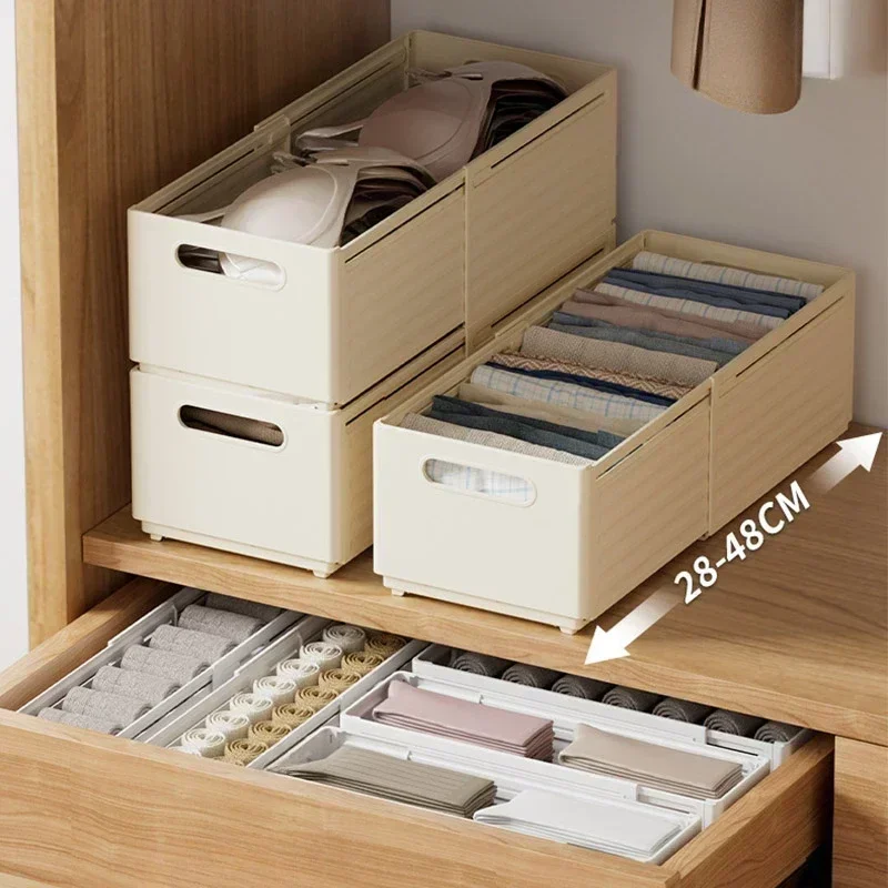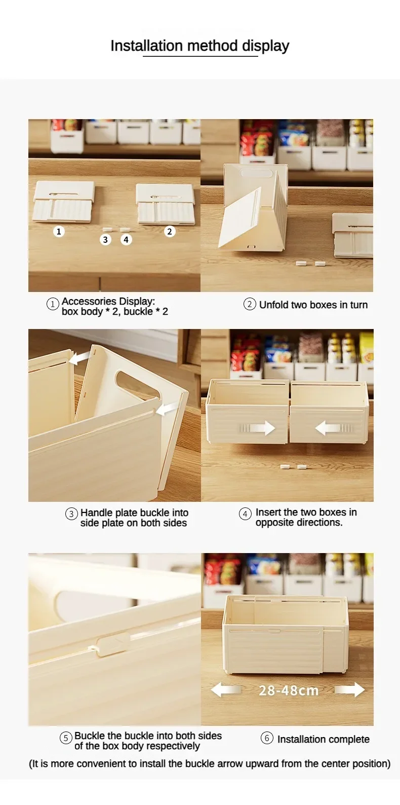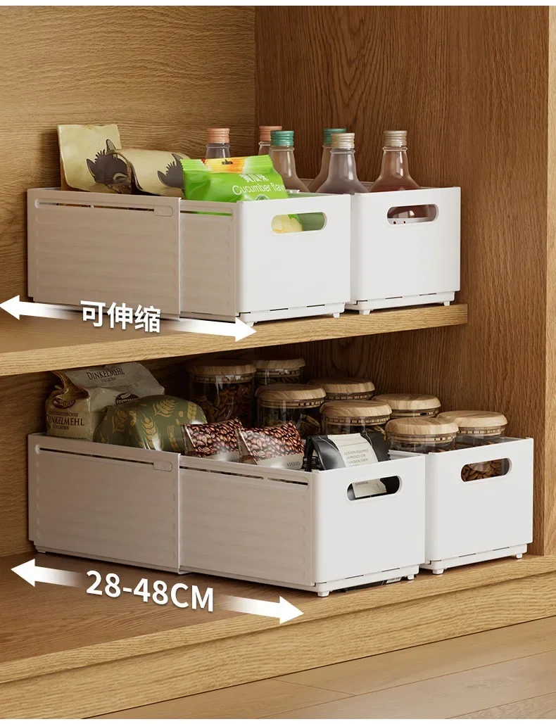 1PC Retractable ลิ้นชักความยาวปรับตู้เก็บ STACKABLE ห้องครัว Sorting Storage กล่องสําหรับ Home