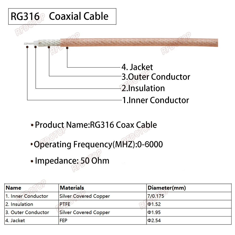 1M ~ 500M สีน้ําตาล RG316 COAX CABLE 50 OHM LOW Loss สําหรับ CRIMP Connector Fast Shipping คุณภาพสูง