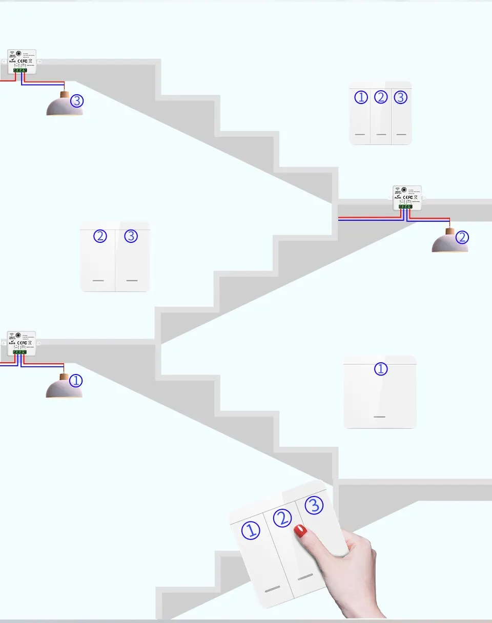 1.สวิตช์หลายตัวสามารถควบคุมเครื่องรับที่แตกต่างกันได้ ประหยัดพลังงาน หลีกเลี่ยงความมืด