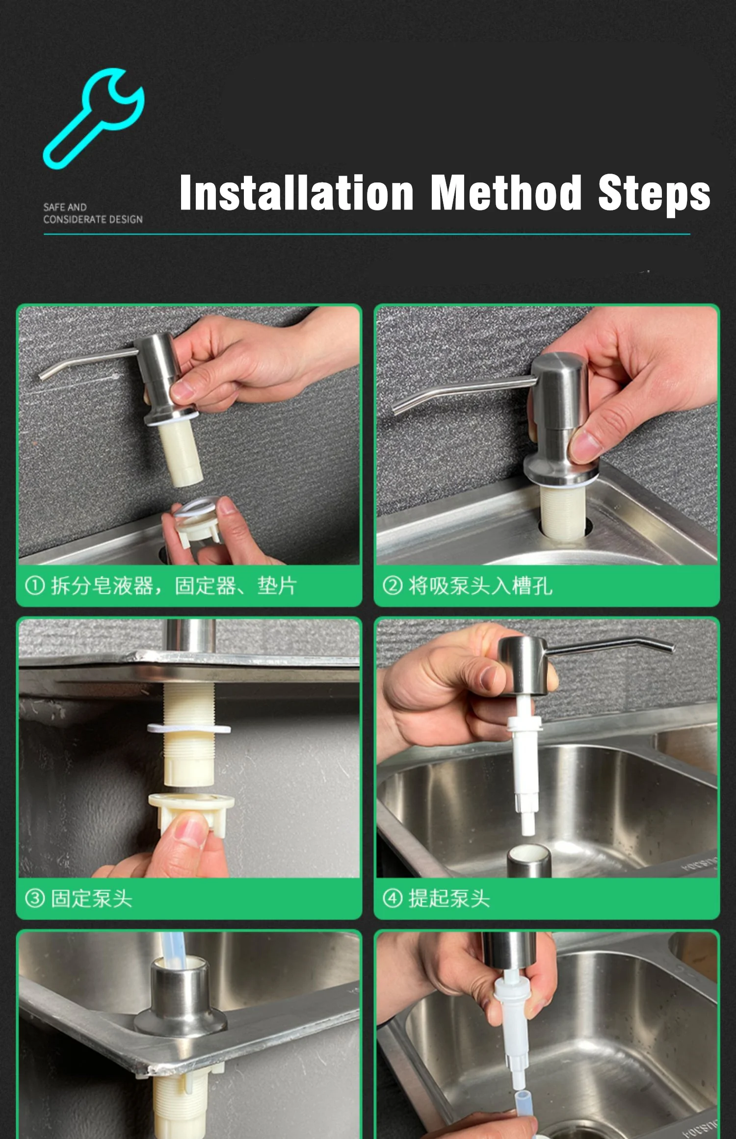 1ชุดเครื่องจ่ายสบู่เหลวสแตนเลส Built-In โลชั่นปั๊มขยายหลอดสำหรับ25-36มม.บ้านห้องน้ำห้องครัวอ่างล้างจาน