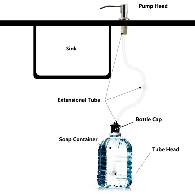 1ชุดน้ำยาเครื่องจ่ายสบู่เหลวสแตนเลสในครัวปั๊มน้ำมันดีเซลในตัวขยายห้องน้ำ/เช็ควาล์ว/ตู้/ฝาขวดเหมาะสำหรับหลุมอ่างล้างหน้าในครัวขนาด25-36มม.