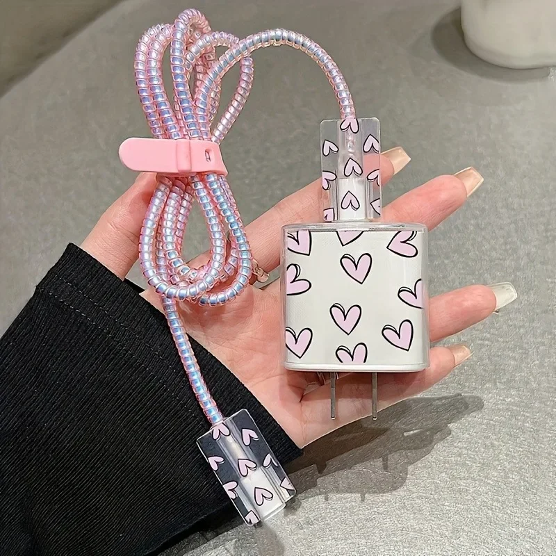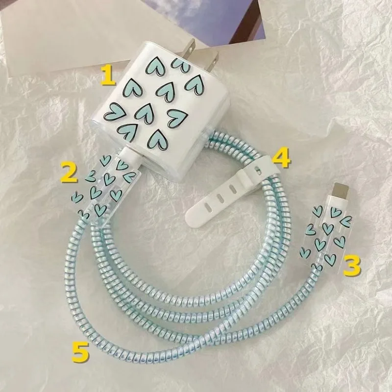 ที่เก็บสายชาร์จ ตัวล็อคสายชาร์จ พร้อมเคสป้องกันสำหรับสายชาร์จ Apple 18/20w ชุด 5 ชิ้น