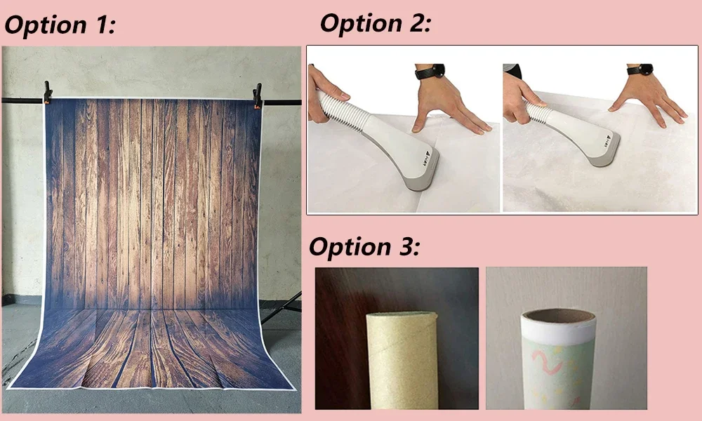 รีดด้านหลัง (ไม่ใช่ด้านภาพ) ด้วยอุณหภูมิต่ำเพื่อขจัดรอยยับได้ง่าย เพื่อหลีกเลี่ยงความเสียหายจากไอน้ำที่อาจเกิดขึ้น ให้วางผ้าแห้งไว้ระหว่างฉากหลังกับเตารีด